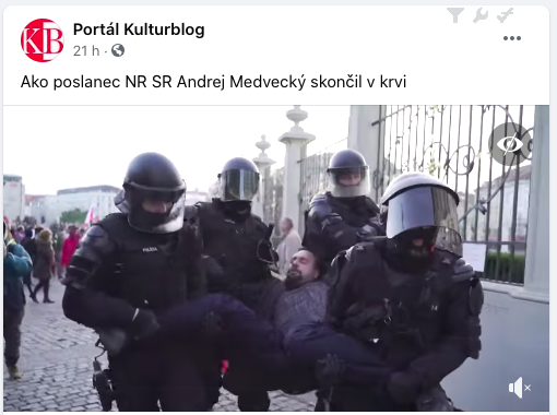 Kotlebovci šírili aj ďalší hoax, ktorý sa stihol rozšíriť aj vyvrátiť v priebehu niekoľkých hodín. Poslanec ĽSNS, niekoľkokrát odsúdený násilník Andrej Medvecký bol spacifikovaný ťažkoodencami. Na videu je vidieť, že má na hlave krvavú šmuhu. Podľa polície kládol odpor príslušníkom policajného zboru. Tí ho spacifikovali a neskôr bez problémov prepustili. Medvecký sa vrátil medzi protestujúcich akoby sa nič nestalo.