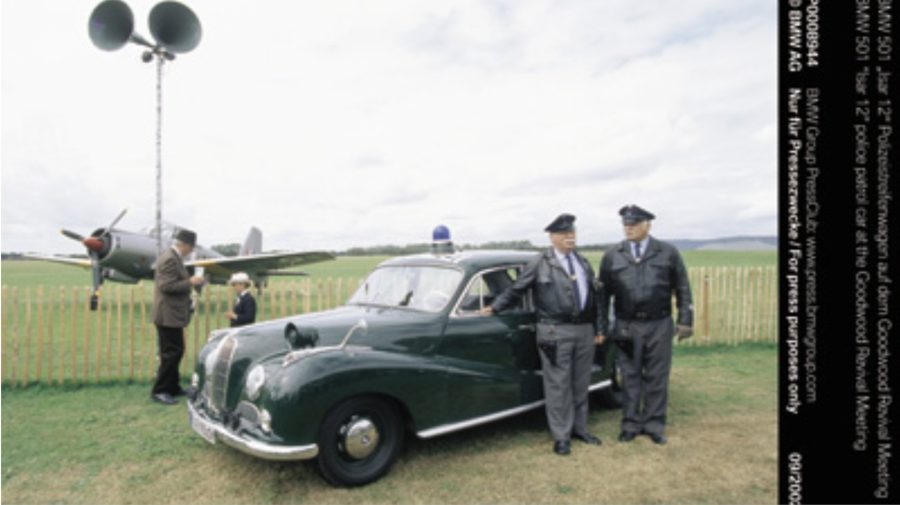V Nemecku, hlavne v oblasti Mníchova, sa do ulíc vybrali hliadky v prvom povojnovom BMW. Model 501 bol odhalený na frankfurtskom autosalóne v roku 1951, do sériovej výroby ho BMW zaradilo o rok neskôr. Pod výzor sedanu sa podpísal Peter Schimanowski, nemecký dizajnér narodený v Poľsku ako Szymanowski, ktorého rukopis vidno na viacerých legendách z Mníchova: BMW 326 či 501 a 502 aj vo verziách kabriolet.