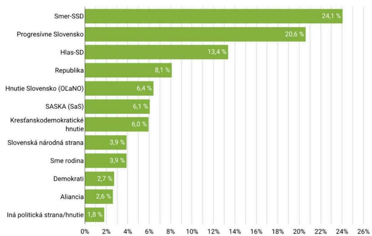 Ide vôbec o prvé meranie preferencií politických strán v prípade volieb do Národnej rady SR po atentáte na premiéra. Z prieskumu jasne vyplynula dominancia strany SMER-SSD (24,1 %), ale aj pomerne výrazne stúpajúca popularita hnutia Republika (8,1 %). To sa po parlamentných voľbách ocitlo mimo hranicu zvoliteľnosti, avšak dnes je podľa prieskumu štvrtou najsilnejšou stranou na Slovensku.