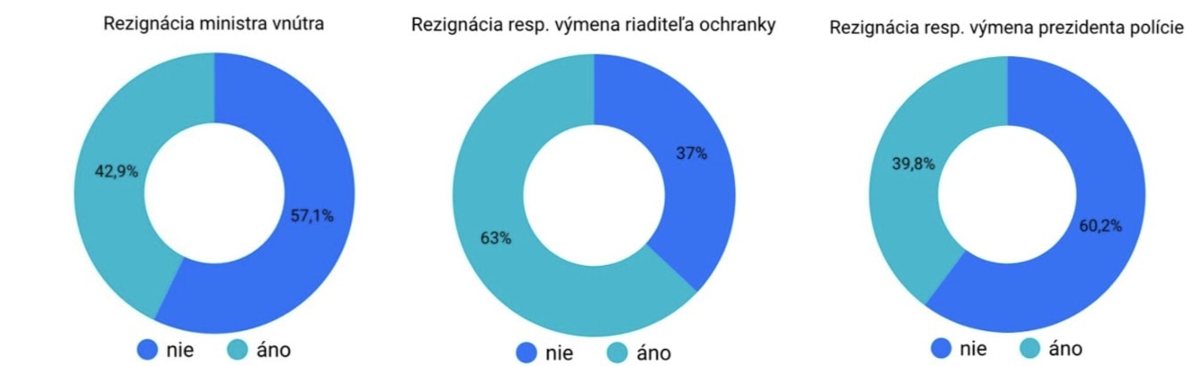 Ukázal tiež, že podstatne vyššia miera očakávania rezignácie až 63 % oslovených je u riaditeľa ochranky (riaditeľa Úradu pre ochranu ústavných činiteľov a diplomatických misií). Naopak, len 39,8 % oslovených má toto očakávanie u prezidenta polície, čo je ešte menej ako v prípade ministra vnútra (viď priložené grafy).
