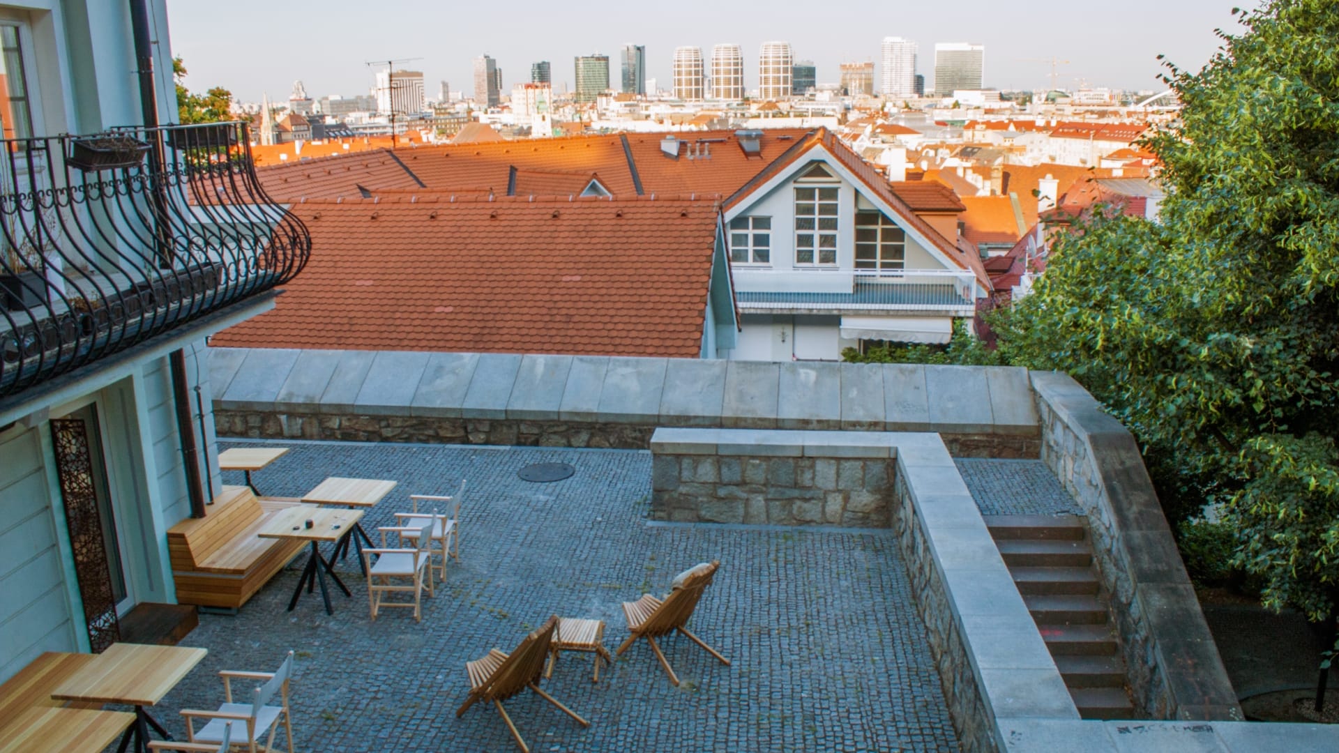 Kaviareň dodáva malému námestiu s krásnym výhľadom na panorámu hlavného mesta nový dych. Okolie hradu je ako stvorené na prechádzky, ktoré si môžeš v kaviarni magicky osladiť. Za kaviarňou stojí architekt Sven Szokolay a šéf prevádzky Richard Buchlík.