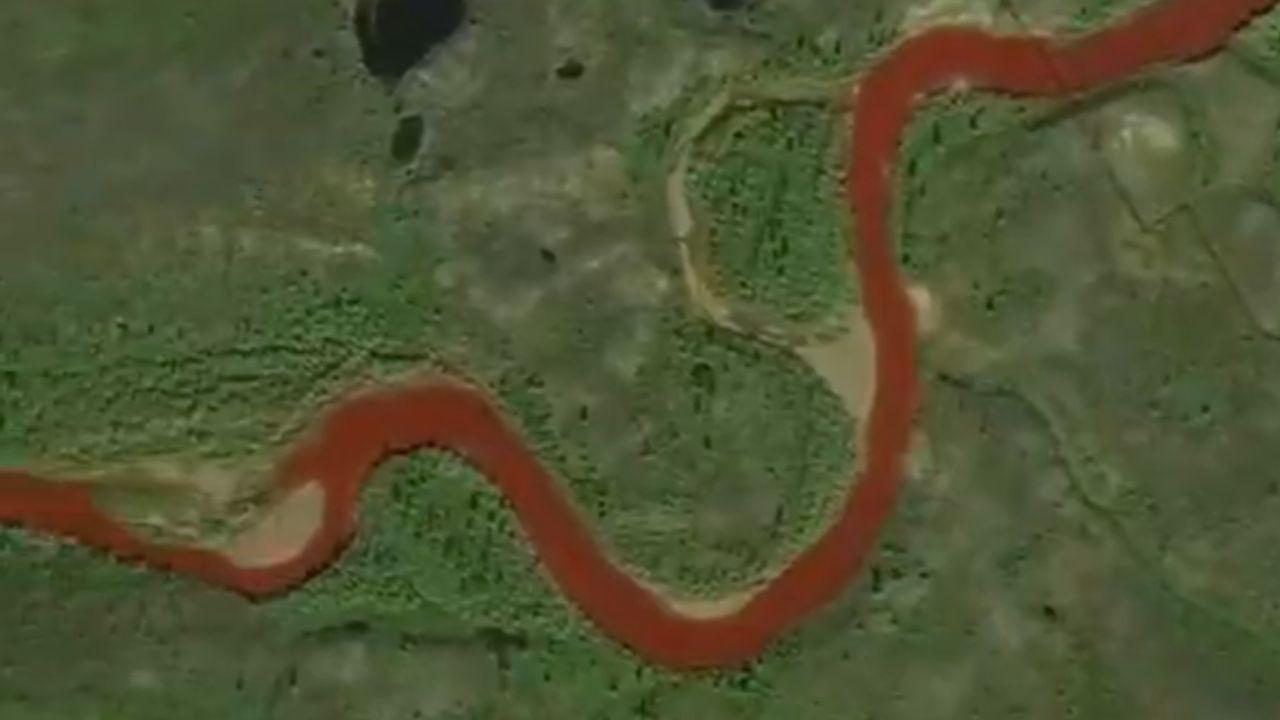 A satellite view at what rivers Ambarnaya and Daldykan outside Norilsk look now after the spill of more than 20,000 tonnes of diesel fuel pic.twitter.com/Wwpx2UqsLp