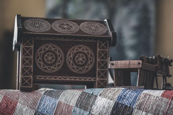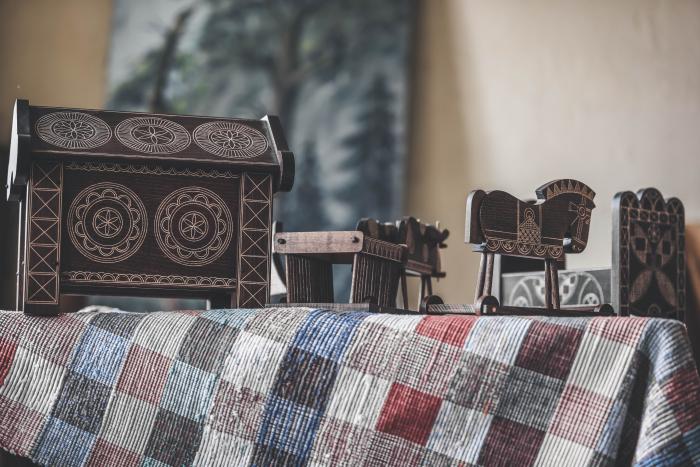 „Starí kyjatickí majstri začali hračky zhotovovať popri výrobe stoličiek, stolov a súsekov – skladaných drevených skríň na obilie, ktoré zložené prevážali do ďalekých krajín. Pre svoje deti najprv vyrábali zmenšeniny nábytku, ktoré zdobili typickým ornamentom vytvoreným s pomocou špeciálneho kružidla.“