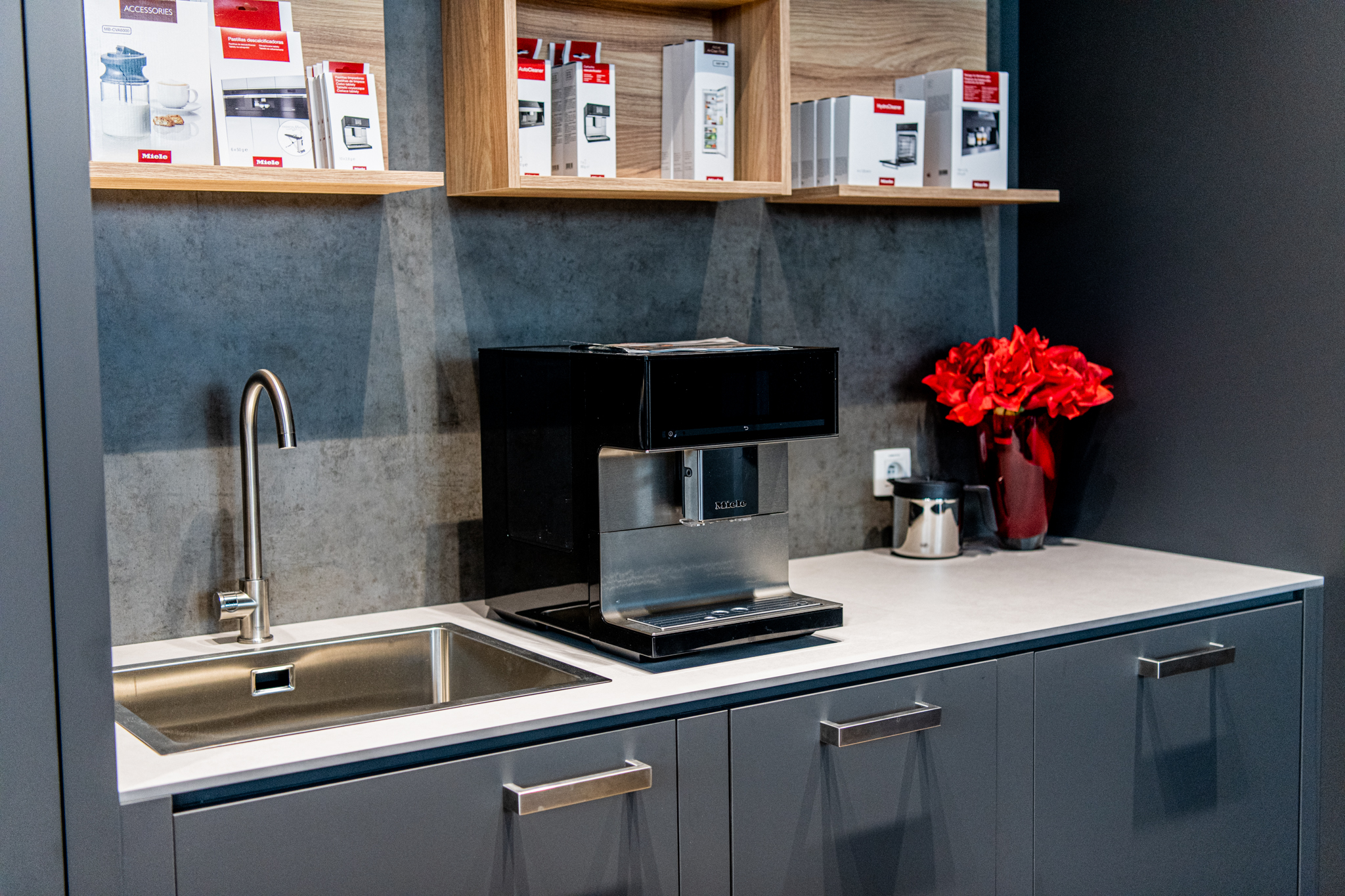 V novom priestore v Bratislave má človek možnosť posedieť si v príjemnom prostredí, vychutnať si kávu priamo z kávovarov Miele, ale môže sa dokonca naučiť aj variť.