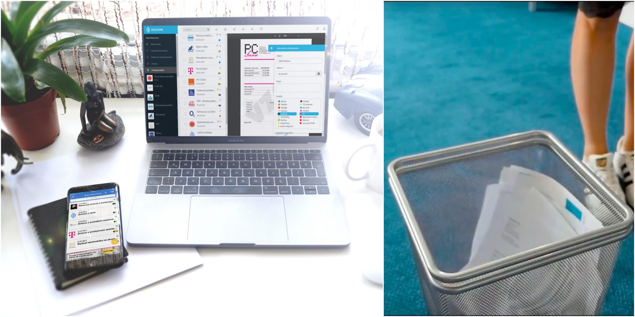 - Predstav si, že zadaním kľúčového slova do aplikácie v smartfóne by si mohol za zlomok sekundy nájsť tie doklady spred niekoľkých rokov, ktoré potrebuješ. A všetko by bolo zoradené podľa dátumu a tematiky. A bez šanónov. Pravé o takéto kúzla digitalizácie a archivácie sa stará slovenská firma DOCKitIN.