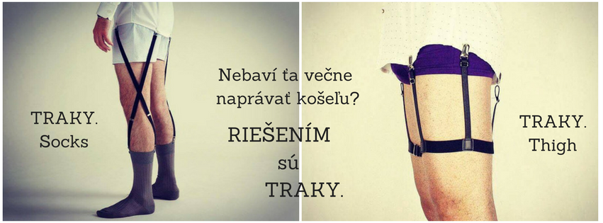 Traky Thigh a Traky Socks majú za úlohu udržať košeľu zapásanú v nohaviciach pri akejkoľvek činnosti po celý deň. Elasticita pásov neobmedzuje žiadny pohyb a svojou silou sťahuje košeľu k zemi. Ako bonus sú na svojom mieste i ponožky a neriskujete tak ich nepríjemné zošuchnutie.