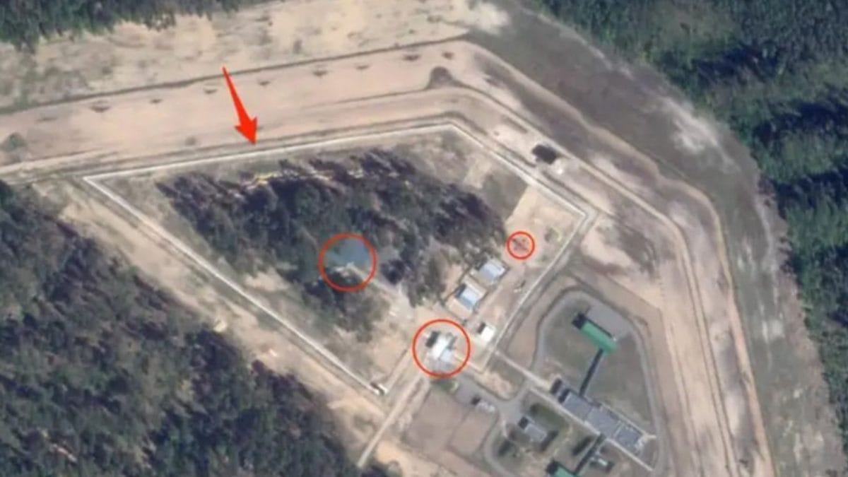 At a military base in Asipovichy, Russia has built a new triple-fenced compound with a covered checkpoint, offloading bay, and command antenna. Nearby sit Iskander missile launchers which can carry nuclear warheads.