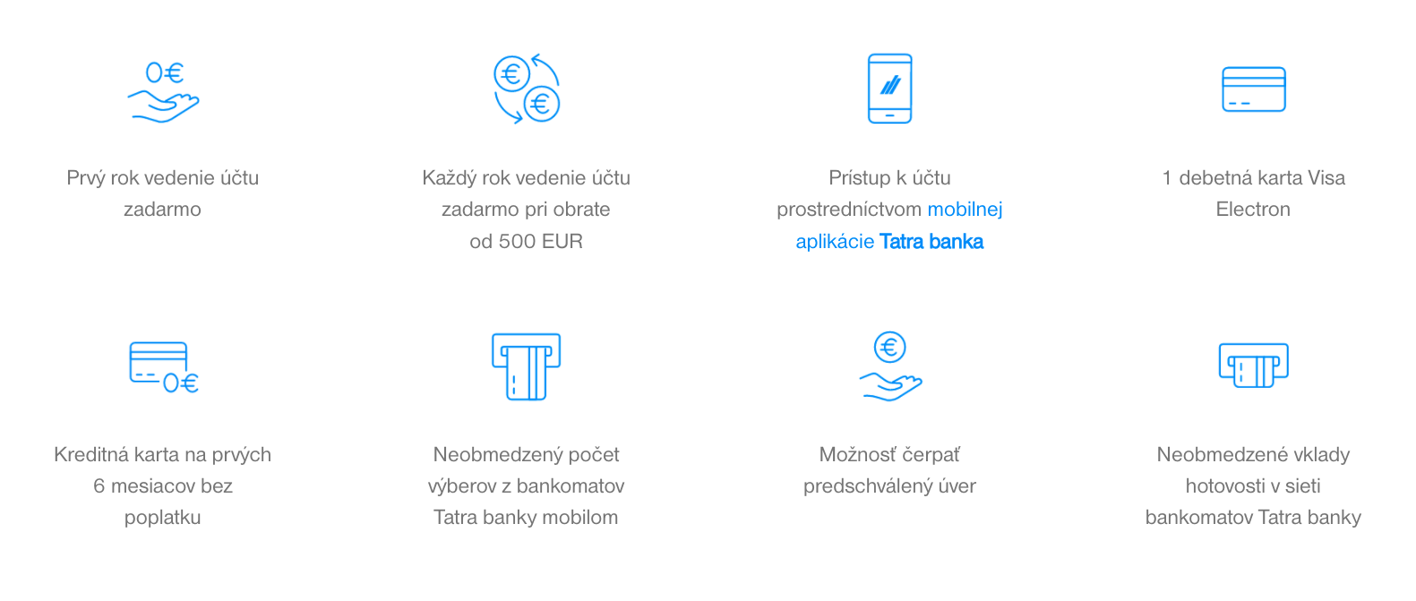 - neobmedzený vklad a výber z bankomatov Tatra banky zadarmo