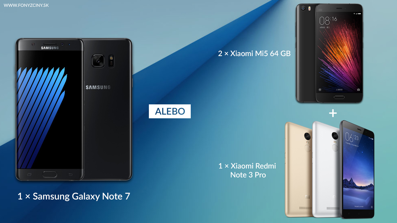 Samsung Galaxy Note 7 je na Slovensku poriadne mastný! Za jeho cenu si kúpiš 2 x Xiaomi Mi5 64 GB + 1 x Xiaomi Redmi Note 3 Pro