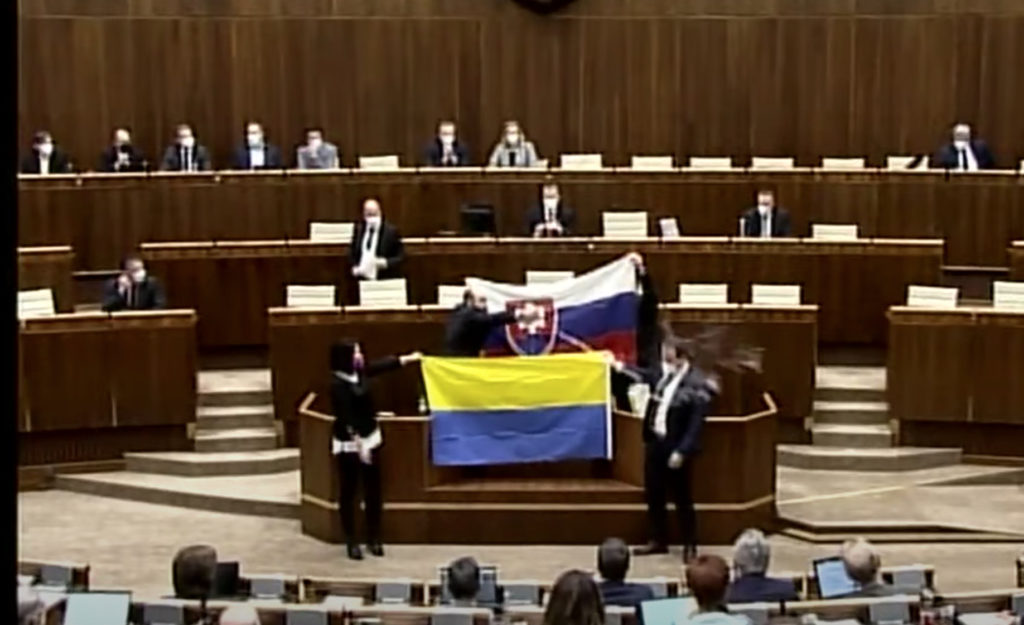 V národnej rade sa strhla roztržka v deň, keď sa prerokúvala obranná dohoda s Američanmi. Okrem piskotu na adresu ministra obrany Jaroslava Naďa došlo k potýčke aj pri rečníckom pulte. Ten obsadili kotlebovci so slovenskou vlajkou. Tých zase zablokovala dvojica saskárov s ukrajinskou vlajkou, a to Jana Bittó Cigániková a Miroslav Žiak.
