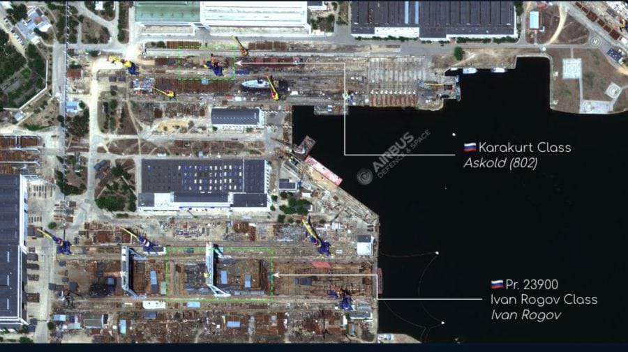Na okupovanom Kryme pokračuje výstavba prvej ruskej obojživelnej útočnej lode triedy Ivan Rogov (Projekt 23900) v lodenici Zaliv. Ukrajinský portál Defense Express zverejnil satelitnú snímku z nešpecifikovaného zdroja, o ktorej sa hovorí, že bola zhotovená na „jar 2025“.
