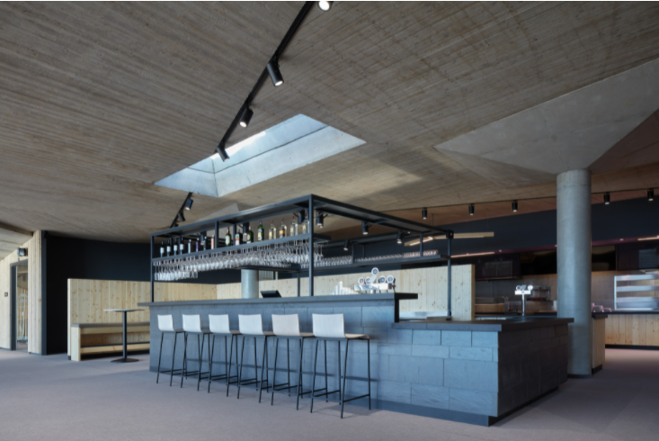 Vznikli tak podzemné denné priestory, ktoré sú otvorené. Pri tomto riešení dosť pomohla aj orientácia svahu smerom na juh. V týchto otvorených priestoroch sa bude nachádzať reštaurácia. Návštevníci si tak budú môcť okrem chutného jedla vychutnať aj úchvatný výhľad na krásne Belianske Tatry.