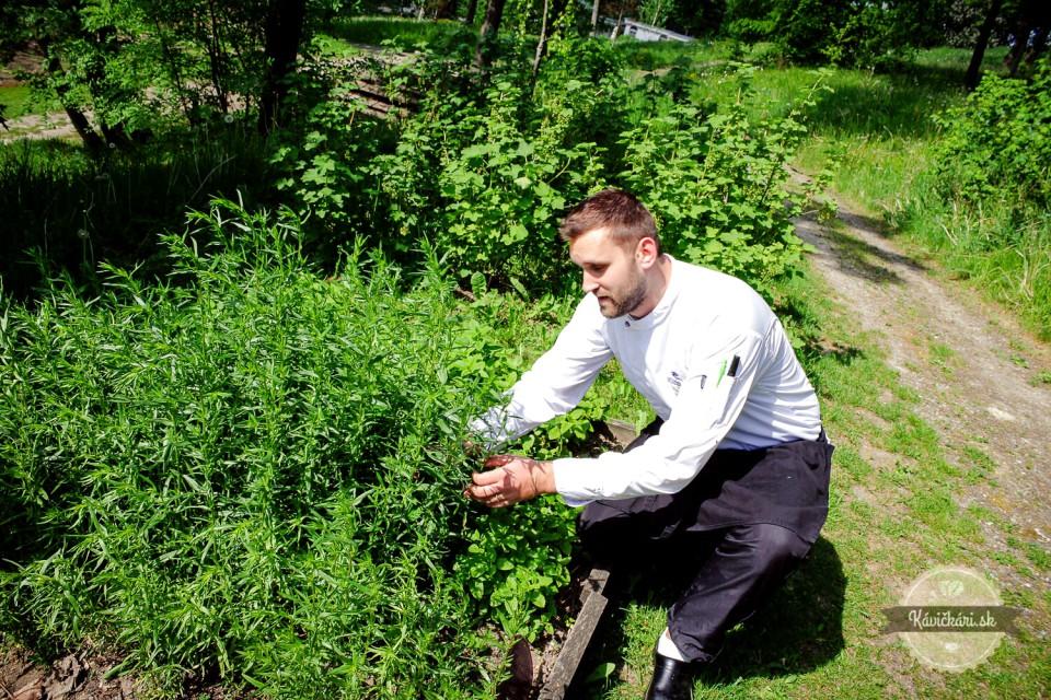 Po apríli upravujeme jedlá po dvoch až troch mesiacoch – reagujeme na sezónnosť, na farmárov, ktorí majú dostupné suroviny, veľa sa snažíme čerpať z nášho parku, tiež tu máme odtajnený krecht z 18. storočia a po mnohých rokoch sme mu prinavrátili dušu. Pôvodným majiteľom tento priestor slúžil ako sklad ovocia a zeleniny a aj my tu máme svoje kuchárske laboratórium (úsmev). To je to, čo nás veľmi baví – siahnuť do prírody, a je to zároveň to, čo nás odlišuje od pražských reštaurácií alebo hotelov. Skoro polroka sme sebestační s bylinkami, momentálne máme vykopanú dieru v zemi, kde pečieme celé jahňacie stehná na marocký spôsob – ako to kedysi robili v púšti.