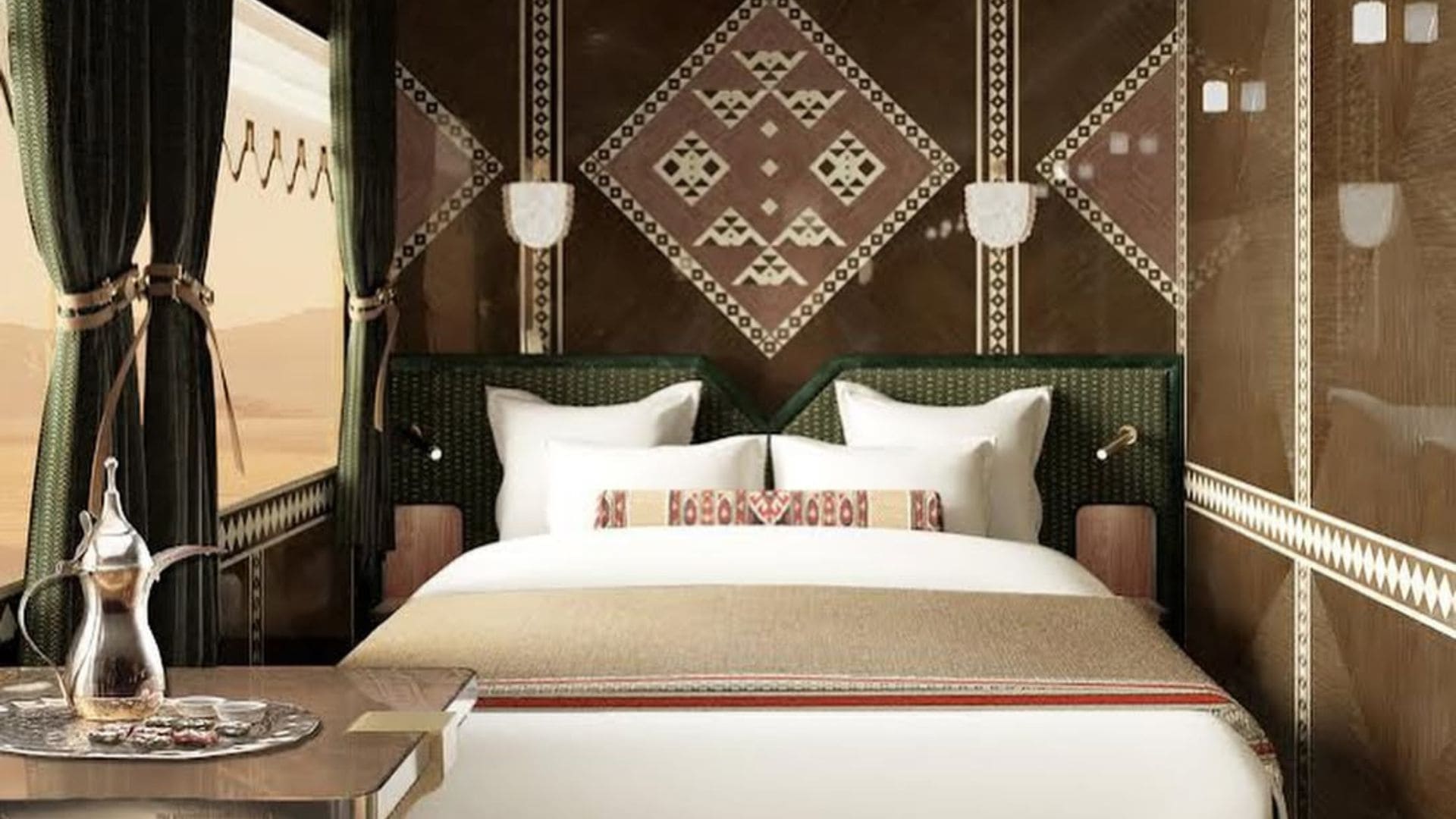 Dizajnéri sa snažili zachytiť ducha Saudskej Arábie v každom detaile. Interiér je ladený do pieskových a zlatých odtieňov s chrómovými prvkami, ktoré odrážajú okolitú púštnu krajinu. Recepčné priestory sú inšpirované tradičným saudským majlisom – miestnosťou na prijímanie hostí. Nájdeš tu geometrické vzory a ručne vyrezávané drevené prvky, ktoré odkazujú na bohaté kultúrne dedičstvo krajiny.