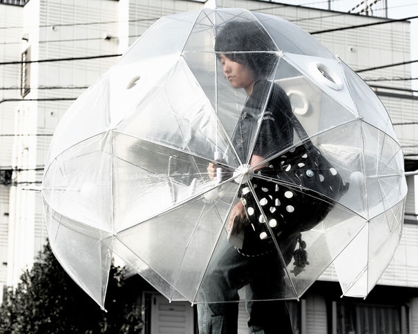 Dáždnik s otvorom v tvare okuliarov