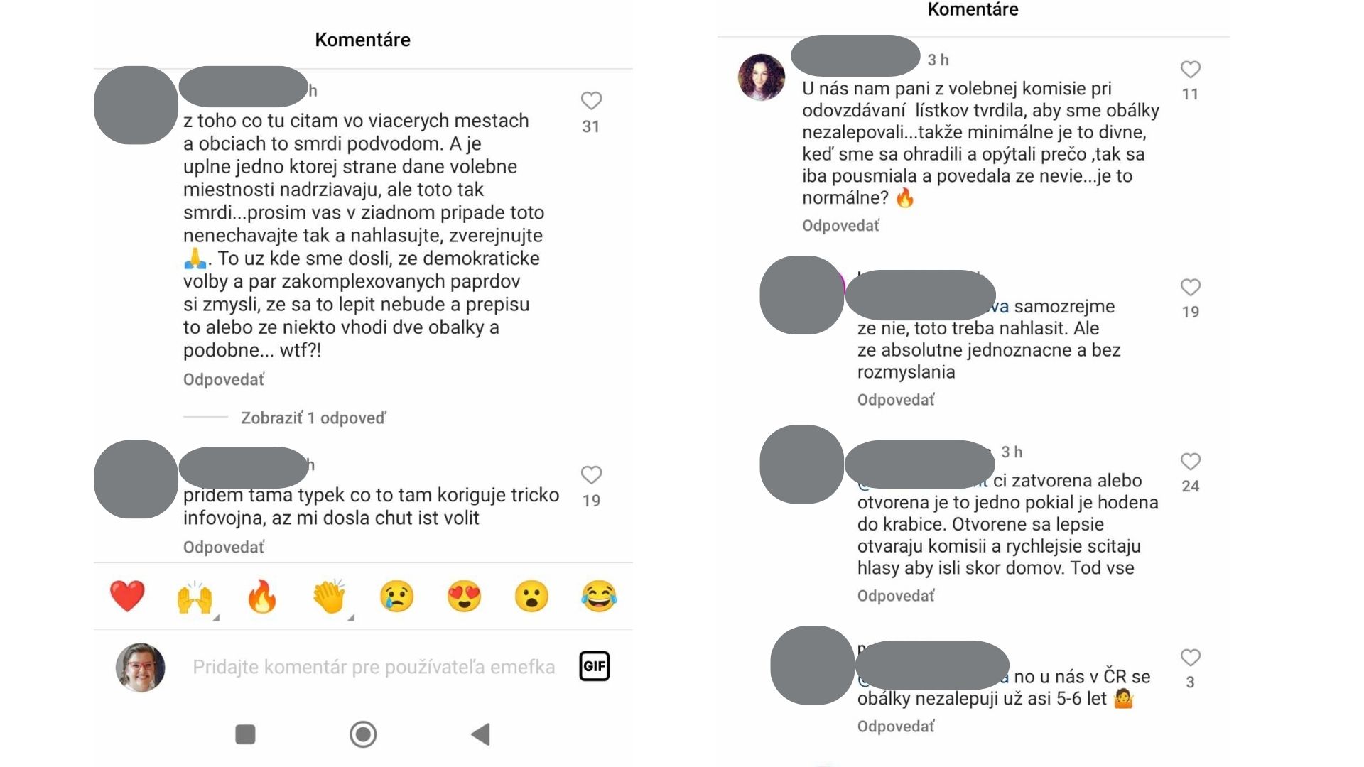 Na Instagrame sa v sekcii komentárov portálu Emefka ľudia priznali, že vo viacerých volebných miestnostiach malo dôjsť k nezalepovaniu obálok vraj na pokyn komisie, z toho dôvodu sa rozhodli udalosť nahlásiť.