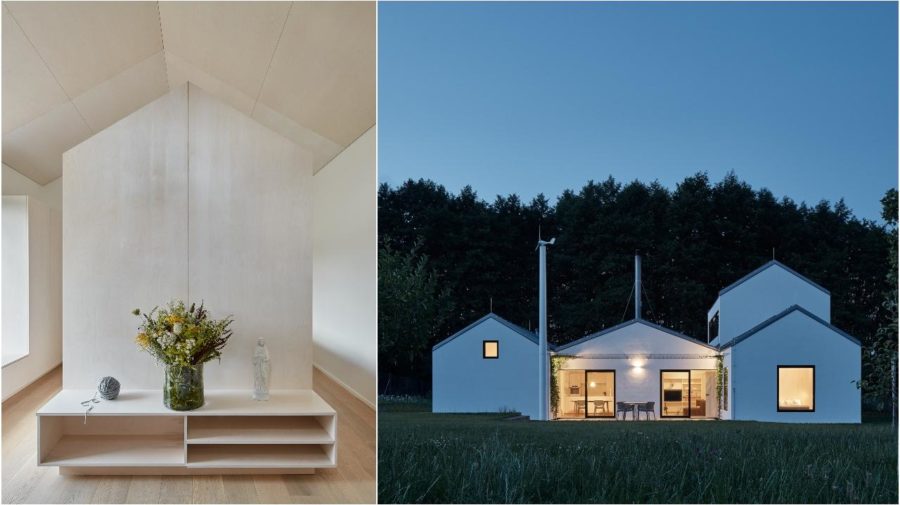 Dom je poskladaný z niekoľkých menších, na seba nadväzujúcich objemov. Ide o letné sídlo pre tri generácie a situované je na lúke, obklopenej lesmi v stredných Čechách.