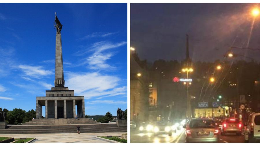 Cestou z hlavnej vlakovej stanice patrí medzi prvé výrazné objekty, ktoré turista uvidí. V týchto dňoch však skôr ako historický Slavín uvidíš obrovské červené logo Huawei, ktoré dominantu mesta zatieňuje. Slavín je totižto v úplnej tme, bez osvetlenia.