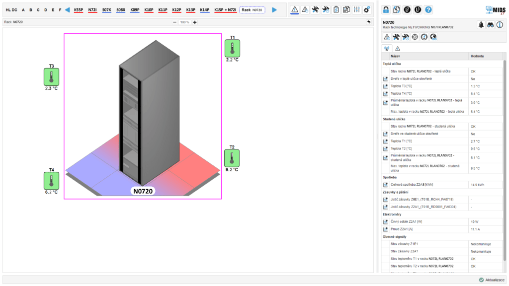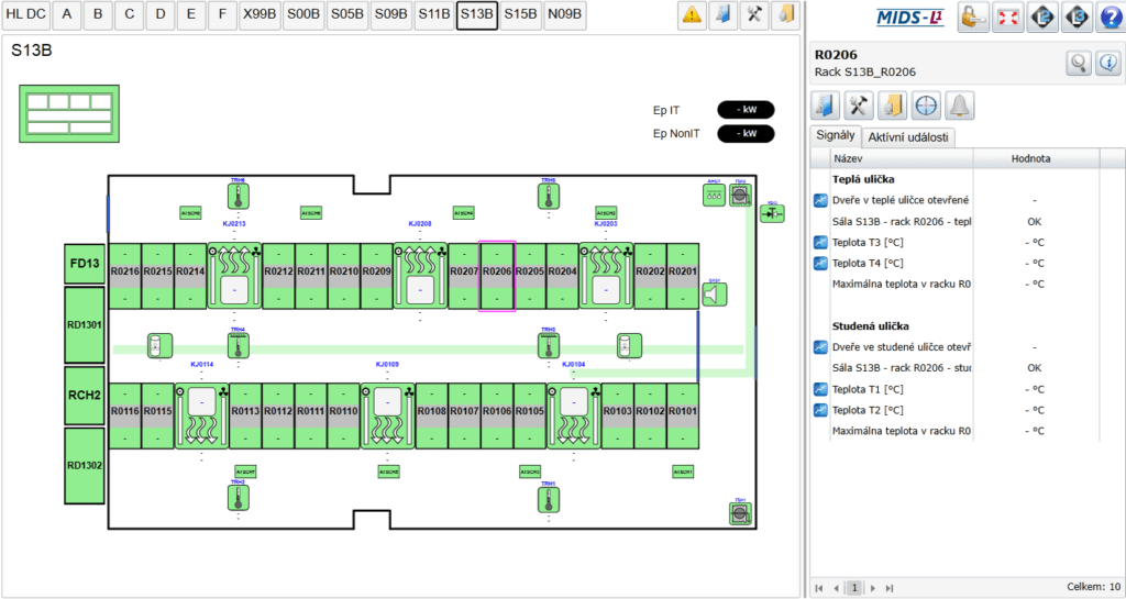 V nich systém monitoruje technologické zariadenia (záložné zdroje elektrickej energie, klimatizačné jednotky, elektrické rozvádzače…) aj fyzikálne veličiny (teplota, vlhkosť vzduchu…). V tomto prípade sa dohromady zbiera ohromných 4 000 fyzických signálov na stovkách zariadení a vyhodnocujú sa tisícky logických funkcií.