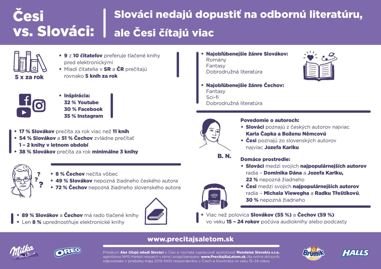 Až 80% Slovákov by ale hlasovalo za zmenu povinného čítania na základných a stredných školách. V exkluzívnom prieskume agentúry NMS Market research pre spoločnosť Mondelez Slovakia s.r.o sa dočítate, ako sú na tom v čítaní Slováci a Česi.