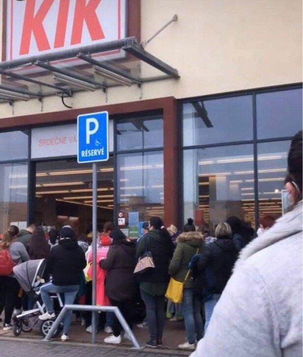 Dnes ráno otvorili svoje brány všetky obchody a Slováci to ihneď využili. Nie sú teda prekvapením fotografie, na ktorých sú zachytení Slováci čakajúci pred obchodmi.