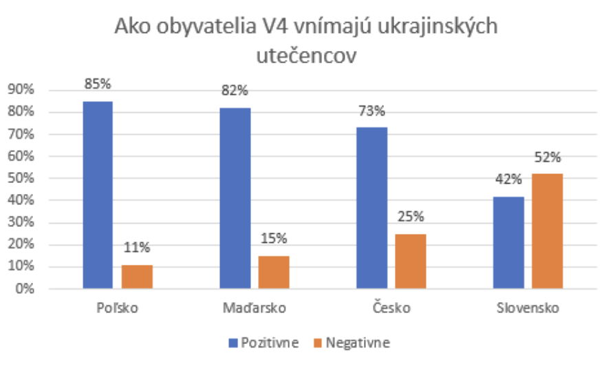 Zatiaľ čo väčšina obyvateľov Česka, Maďarska a Poľska má pozitívny názor na ľudí utekajúcich pred vojnou na Ukrajine, 52 % ľudí na Slovensku vníma ich prítomnosť negatívne. Prieskum ukázal, že najmenej negatívne vnímajú ukrajinských utečencov v Poľsku (11 %), nasleduje Maďarsko (15 %) a v Česku vníma ukrajinských utečencov negatívne 25 % populácie.