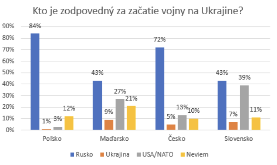 Ako prieskum ukazuje, kým pre Maďarov je osobná komunikácia a sociálne siete najmenej dôležitým zdrojov správ, pre Slovákov sú naopak najdôležitejšie. Ďalšie vysvetlenie negatívneho vnímania ukrajinských utečencov môžeme nájsť vo vnímaní vinníka konfliktu na Ukrajine. Slováci podľa aktuálnych dát neprikladajú Rusku značnú zodpovednosť za konflikt. To čiastočne vysvetľuje aj negatívne vnímanie utečencov z Ukrajiny.
