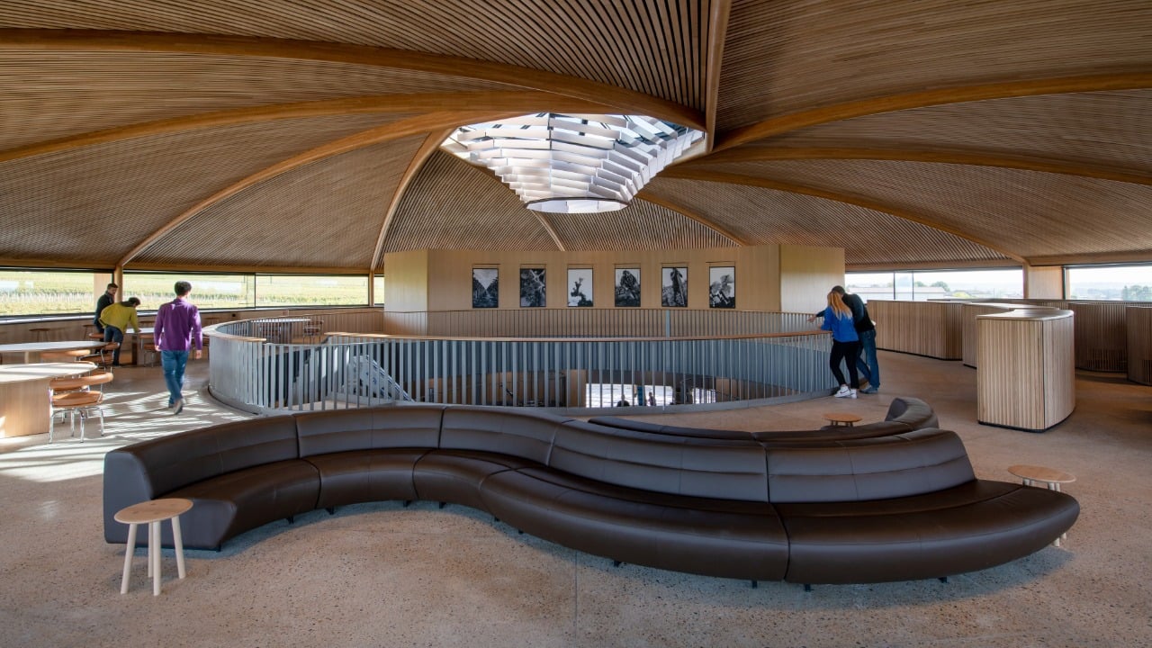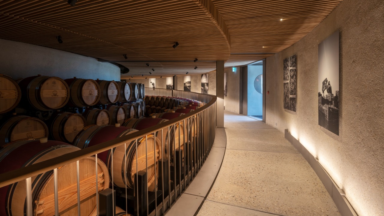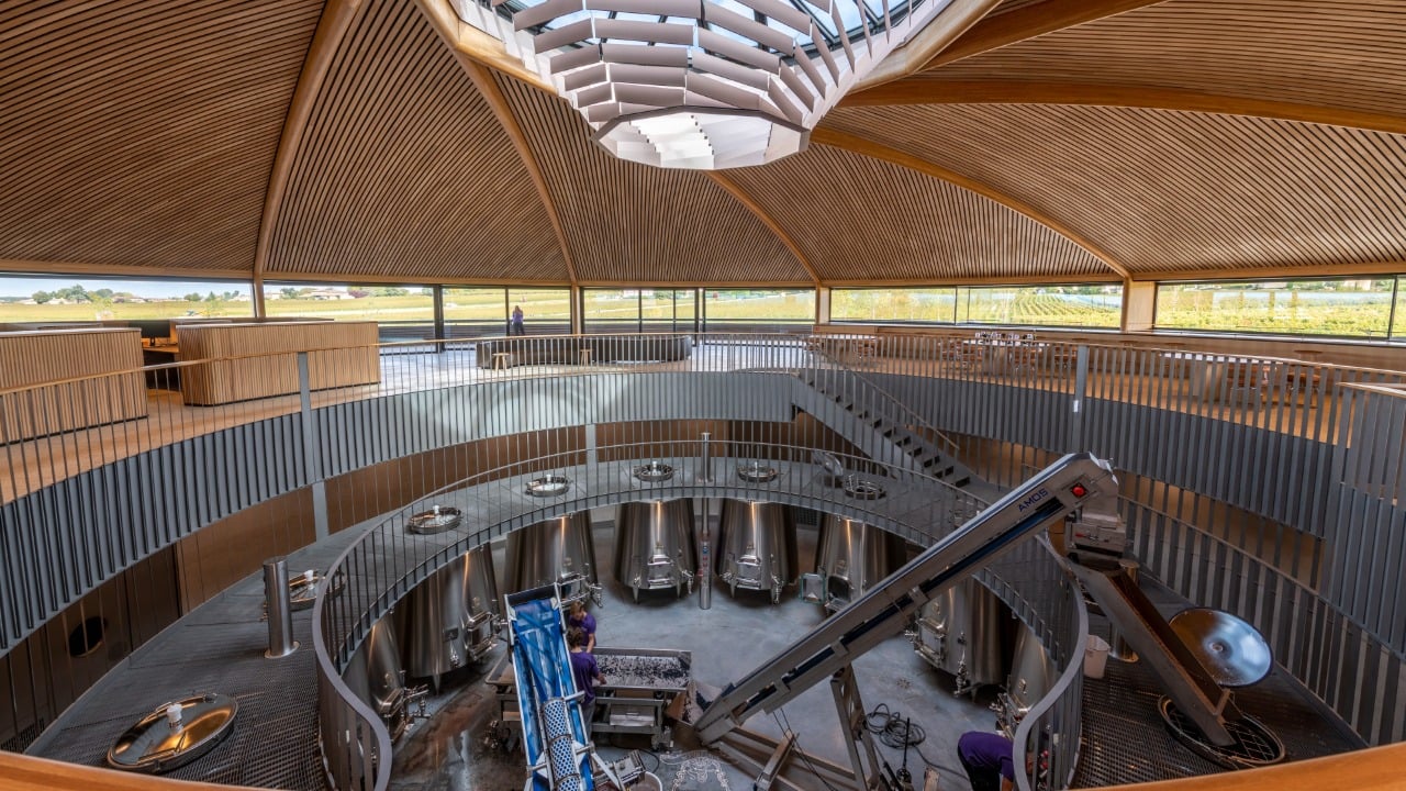 Vďaka kruhovému átriu môže návštevníci sledovať okolité dianie a zároveň dianie dole v priestoroch na výrobu a skladovanie vína, vďaka čomu získajú komplexný a jedinečný zážitok.