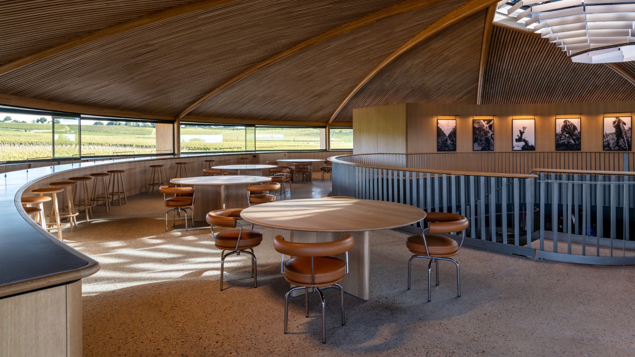 Interiér je neoddeliteľnou súčasťou architektúry objektu a tímy architektonického a priemyselného dizajnu Foster + Partners od začiatku úzko spolupracovali na jeho riešení. Dominantnou degustačnej časti je oblúkový vínny bar s výhľadom na vinohrad a okrúhle stoly pre návštevníkov.