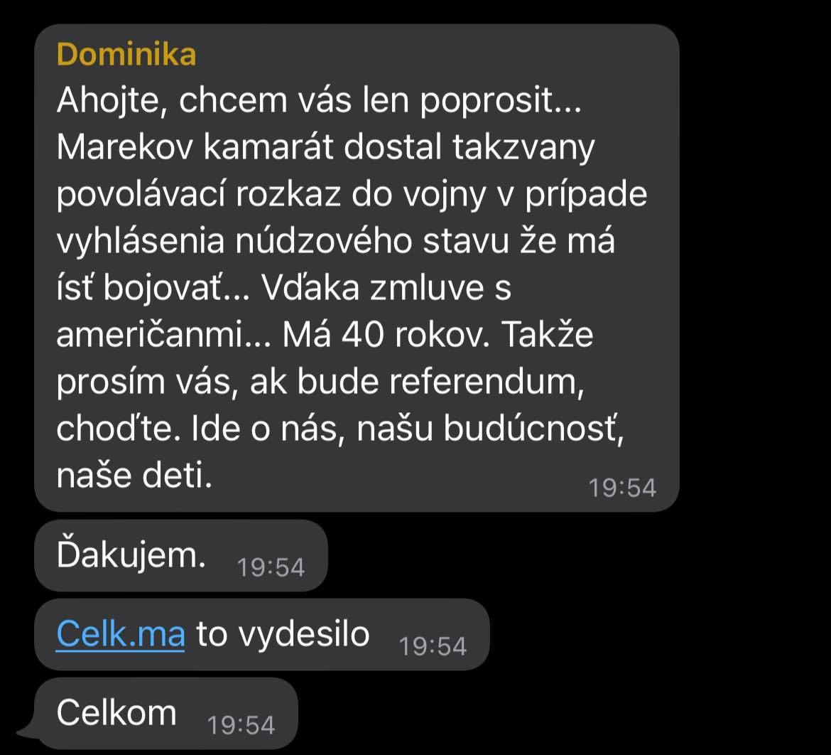 „Mi teraz volal, že nejaký jeho spoluhráč alebo len chalan zo školy… neviem skade, že ho odstavili policajti, spýtali sa ho, koľko má rokov… Chalan začal utekať. Vraj kvôli tomu odstavovali mladých chlapcov na ulici, že ich berú do vojny. Chápeš to?“
