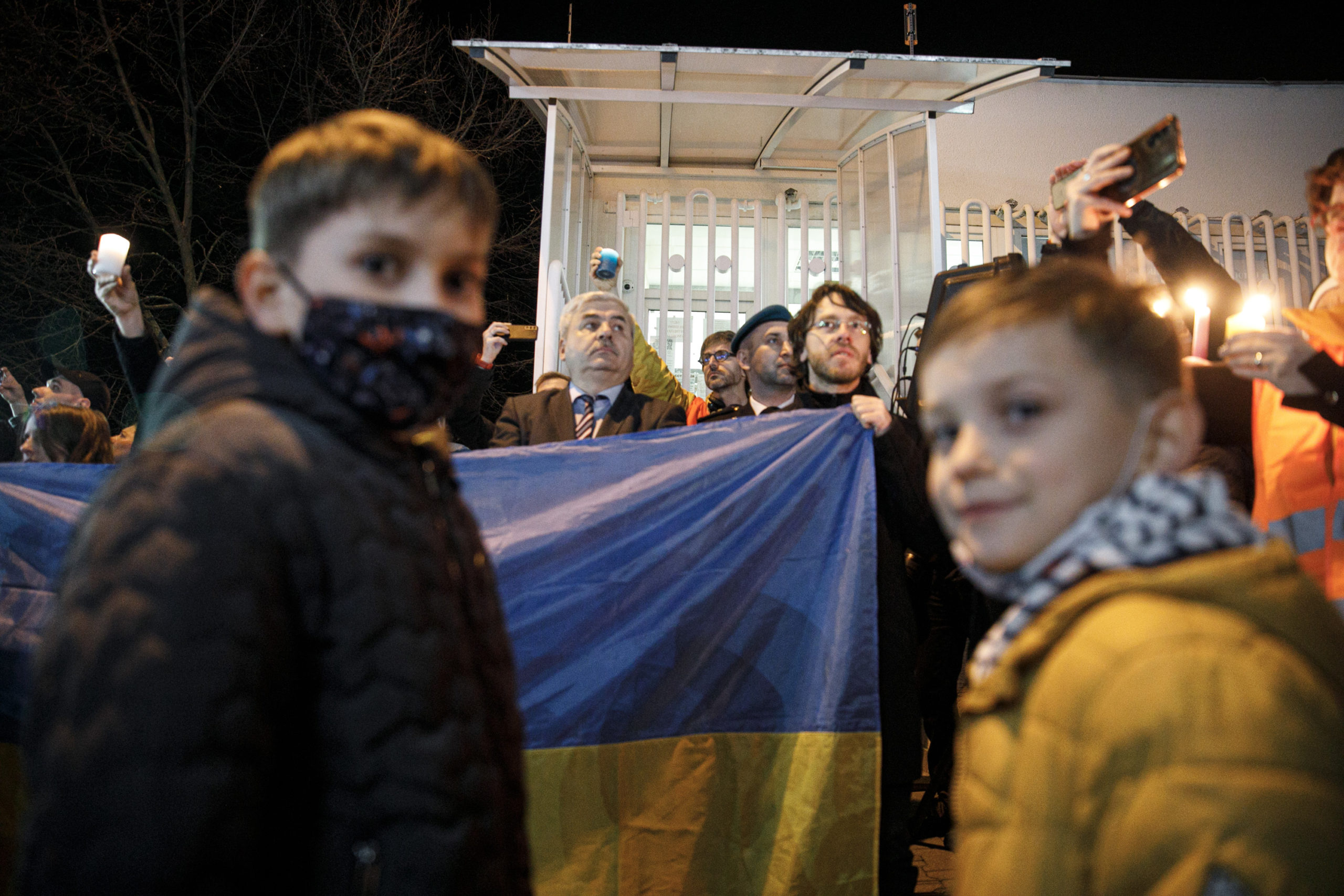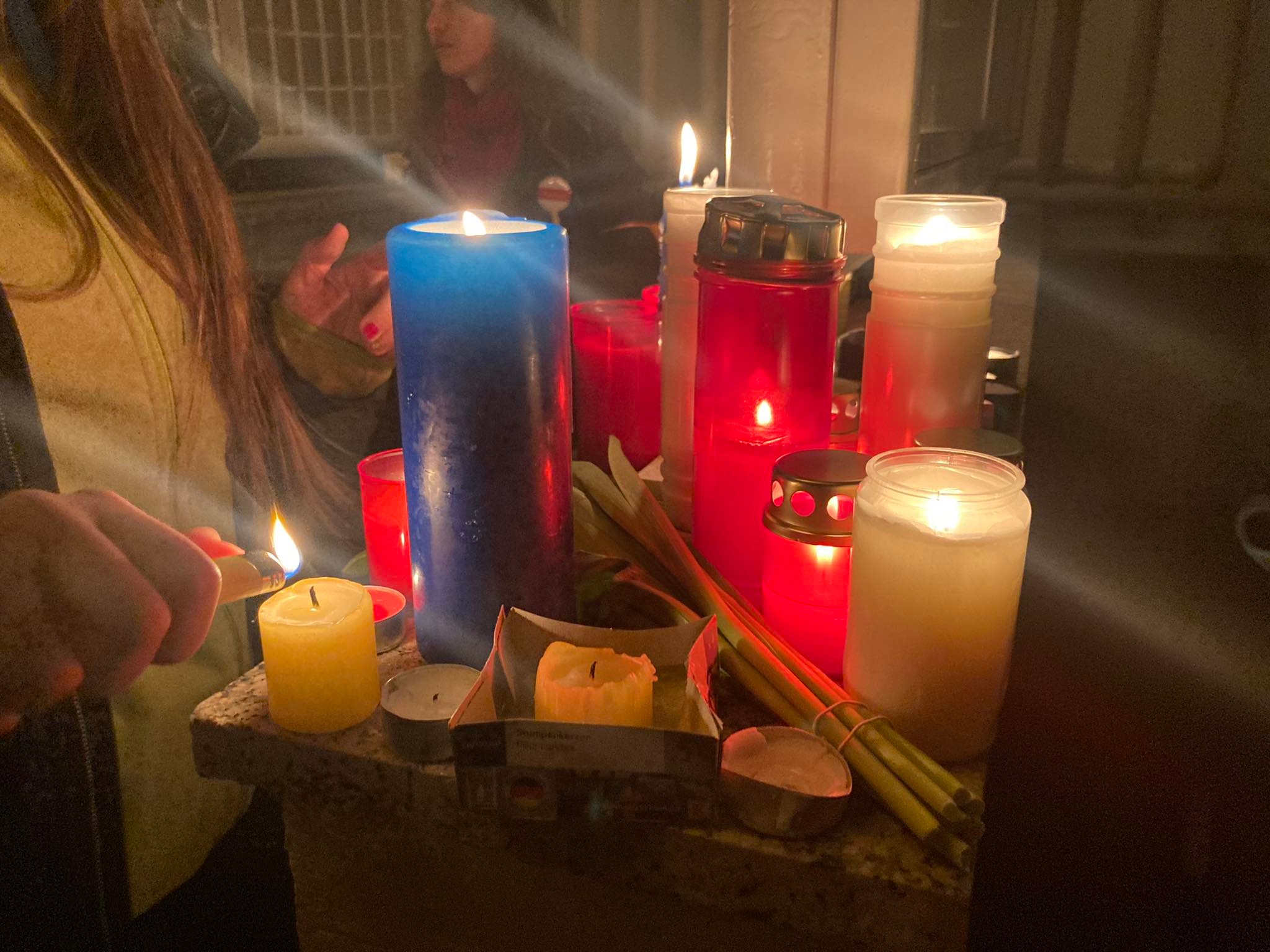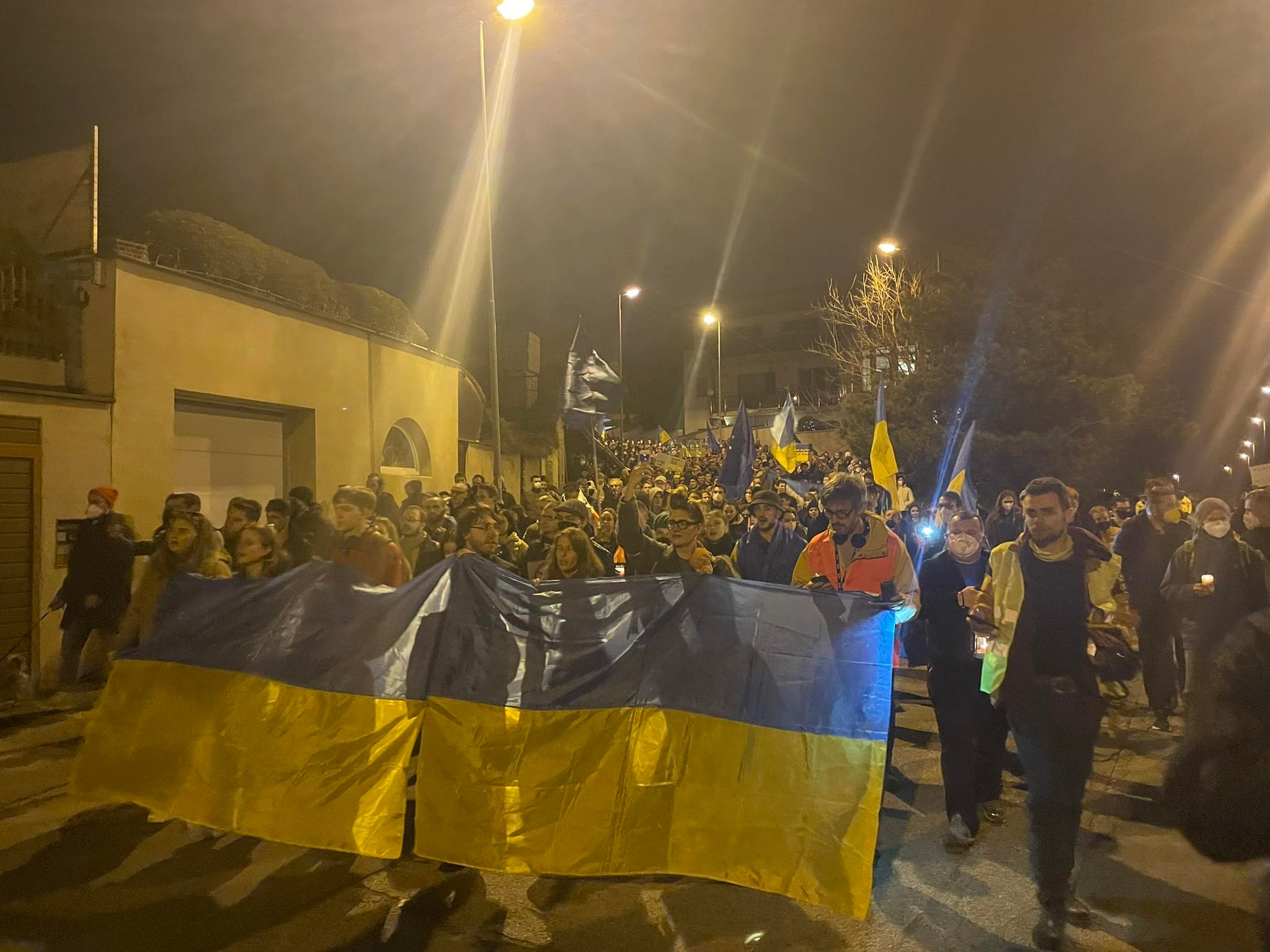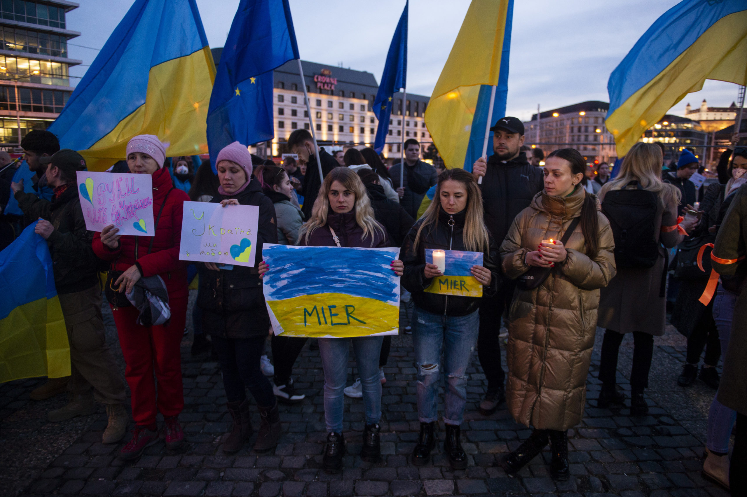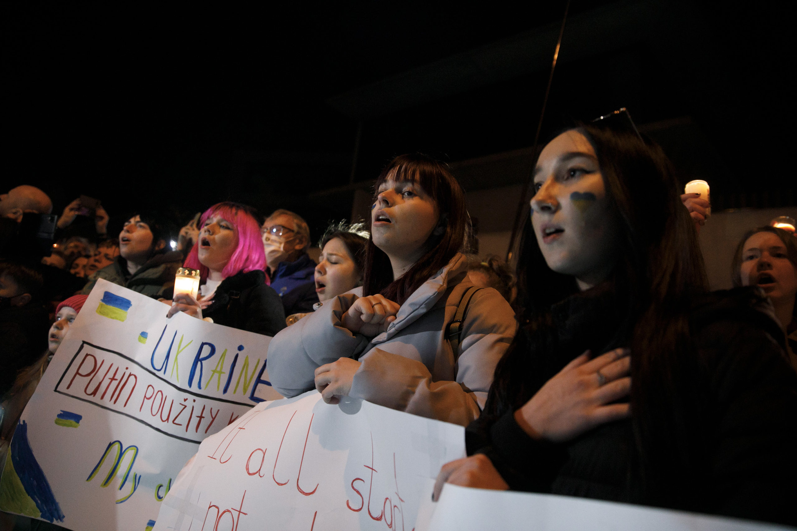 Viacero ľudí v rukách držalo vlajky Ukrajiny aj Európskej únie. Vo farbách vlajky Ukrajiny bol vysvietený aj Prezidentský palác. Na znak solidarity niesli ľudia v rukách sviečky, ktoré neskôr zapálili pred ukrajinskou ambasádou.