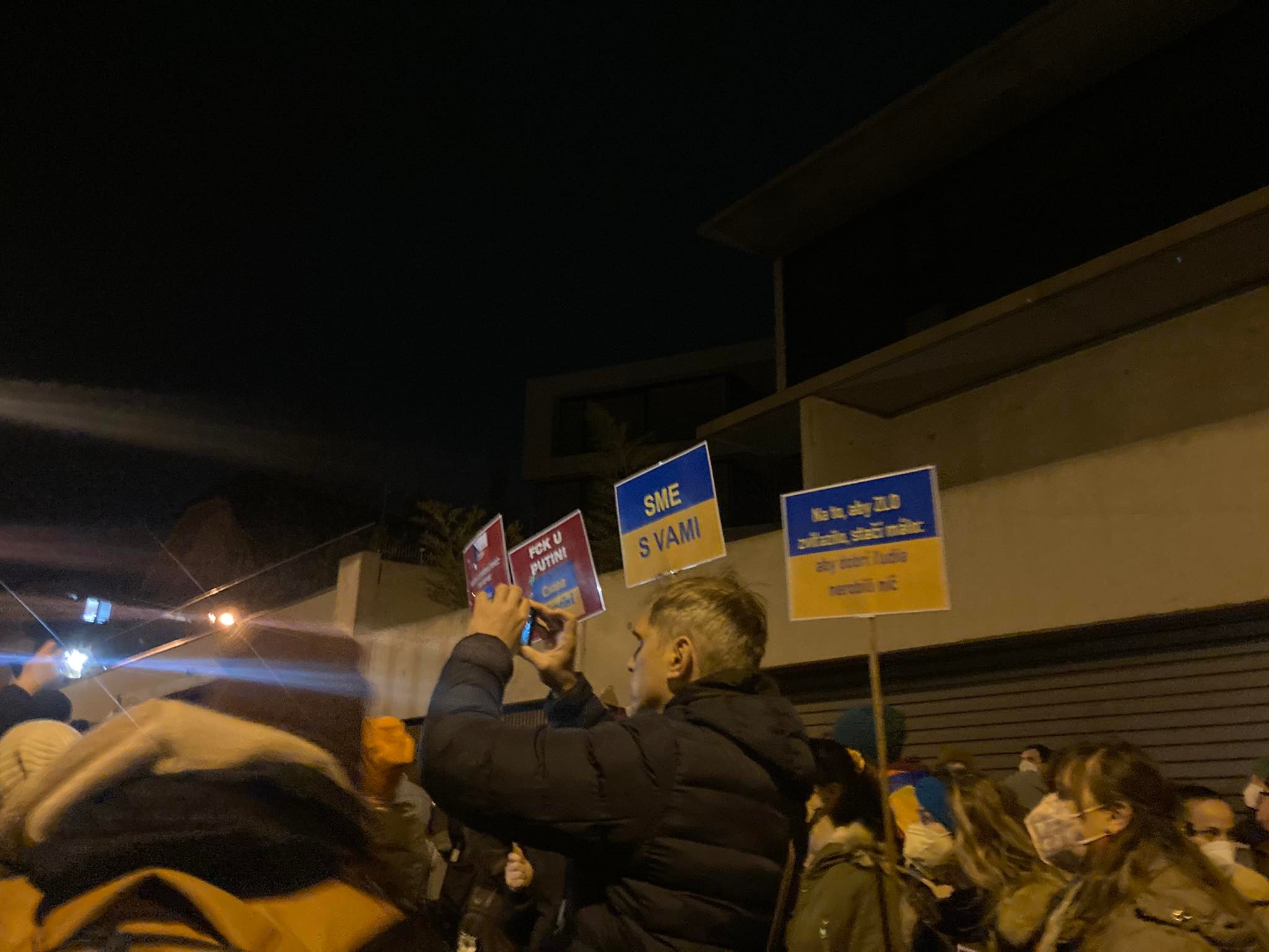 Na zhromaždení boli aj redaktori Startitupu, ktorí celú situáciu na mieste sledovali. Ukrajinu prišli podporiť mnohí Slováci, no pred Prezidentským palácom bolo počuť aj zahraničné hlasy, pričom rezonoval najmä ukrajinský jazyk.