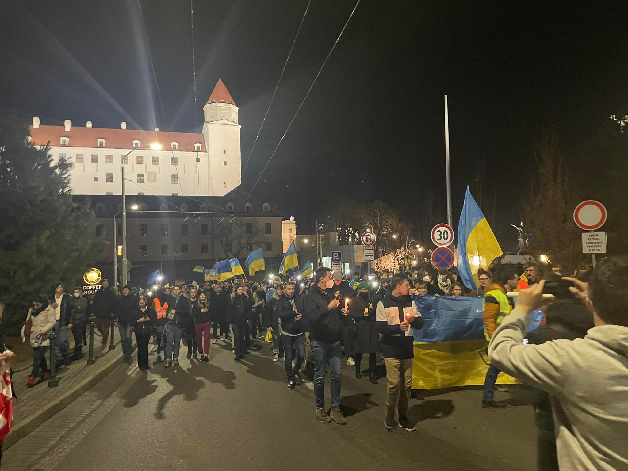 V hlavnom meste Slovenska dnes podvečer odštartoval sviečkový pochod za mier na Ukrajine. Pochod s oficiálnym začiatkom o 18:00 začal na Hodžovom námestí pred Prezidentským palácom. Napokon smeroval po Palisádach k Veľvyslanectvu Ukrajiny. Organizátormi sú občianski aktivisti z iniciatívy Mier Ukrajine.