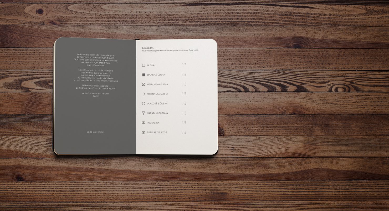 Ide o projekt štyroch mladých ľudí, ktorí po prečítaní množstva kníh o sebarozvoji, time managemente a testovaní rôznych diárov, či bullet journal system-u vypustili na slovenský trh neobyčajný diár, ktorý sa od konkurencie odlišuje predovšetkým jeho prepracovanosťou.