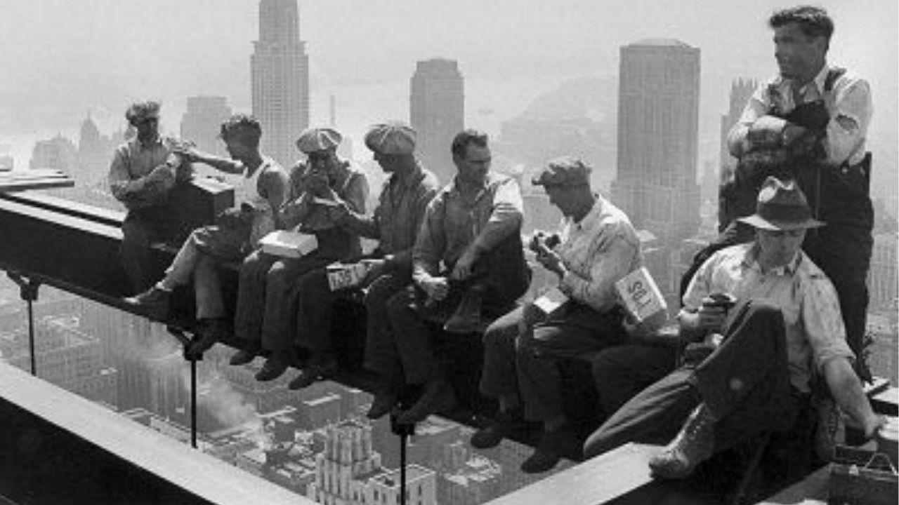 Fotografia vznikla ako súčasť reklamného materiálu z budovania Rockefellerovho centra a je to rozhodne jedna z najslávnejších fotiek minulého storočia. Rozostavaná budova RCA Building dnes známa ako GE Building je mrakodrap, na ktorom robotníci vtedy pracovali. Na prvý pohľad vyzerá snímka poriadne dramaticky. Budova vtedy merala 250 metrov. Tento mrakodrap je 10. najvyšším v New Yorku a 33. v Spojených Štátoch celkovo.