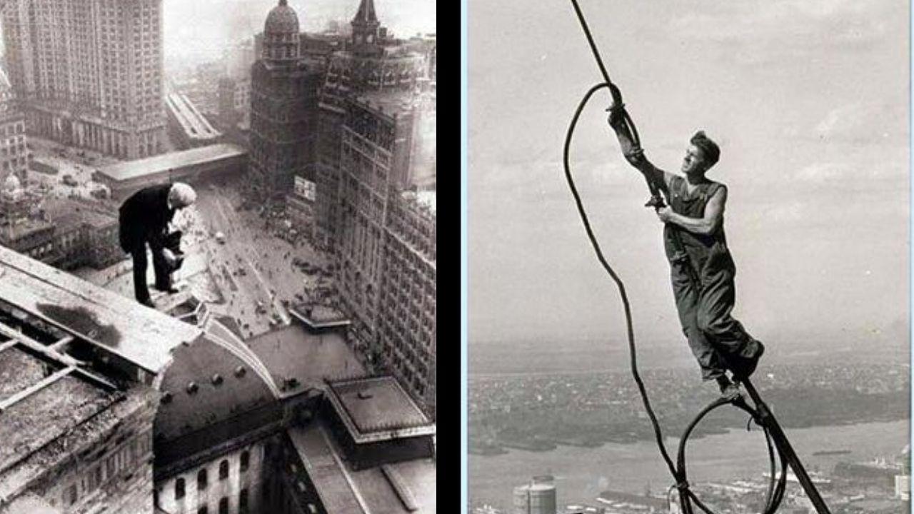 Aj keď v čase stavby boli bezpečnostné štandardy naozaj nízke a na priečnych nosníkoch vo výške vyše 250 metrov robotníci pracovali bez istenia, slávna fotka je bezpochyby zinscenovaná, podobne ako aj ďalšia fotka z tejto série, ktorá zobrazuje spiacich robotníkov. Fotografia šikovne využíva perspektívu pre väčšiu dramatickosť, pod robotníkmi sa totiž nachádzalo už postavené 68. poschodie.