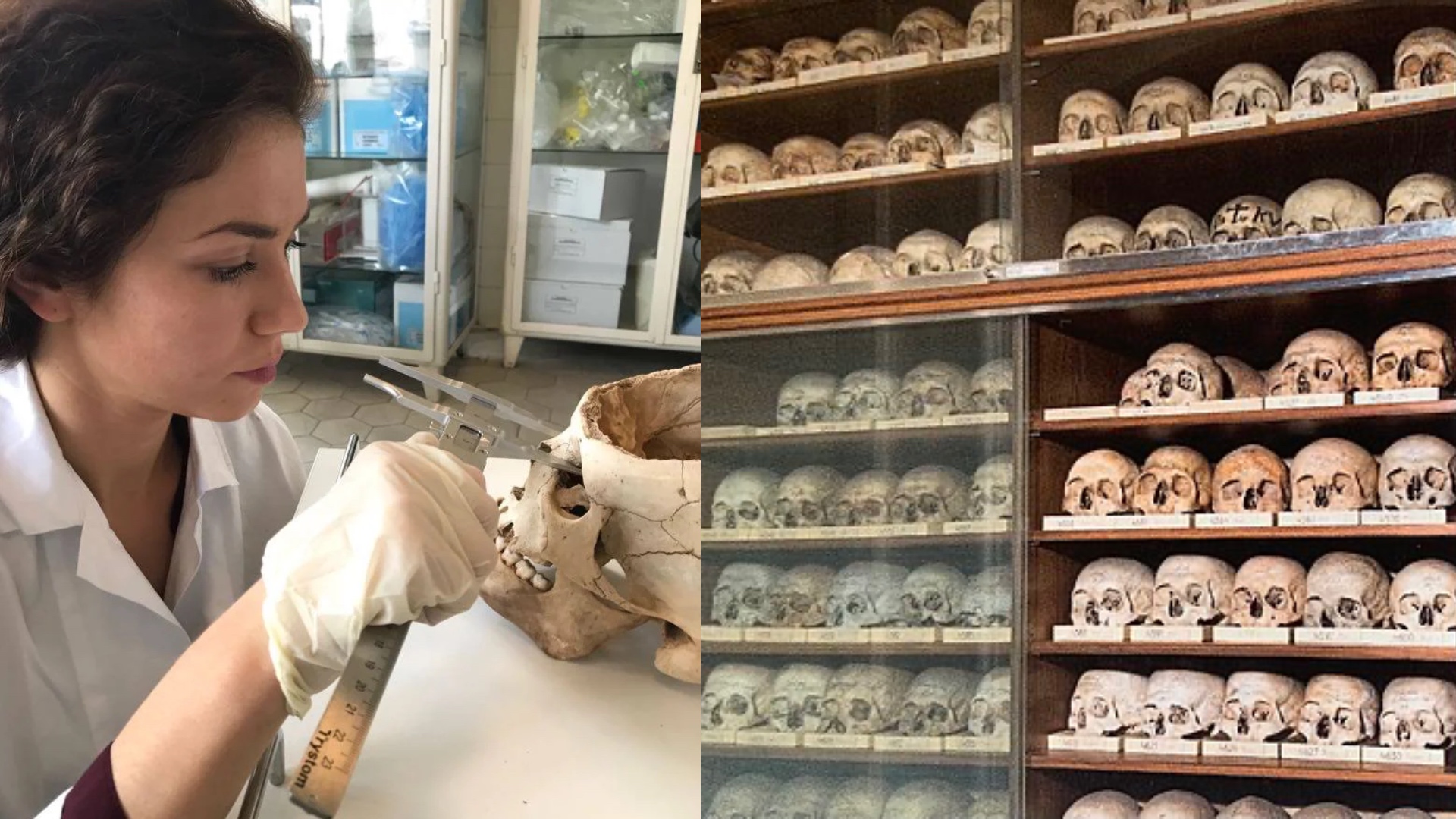 Prvýkrát som videla „naozajstné“ pozostatky bez nalíčenia a odevu, teda v skutočnom podaní, až v pitevni – paradoxne až keď som išla analyzovať kostrový nález. V skratke to funguje tak, že antropológia ako odbor zahŕňa rôzne smery, nie je to výlučne o kostrách alebo telách. Každý študent si síce prejde cvičeniami, kde sa učí anatómiu kostry na skutočných kostiach, občas (ak sa podarí) majú možnosť ísť na pitvu, ale nie je to pravidlo ani podmienka k ukončeniu štúdia.