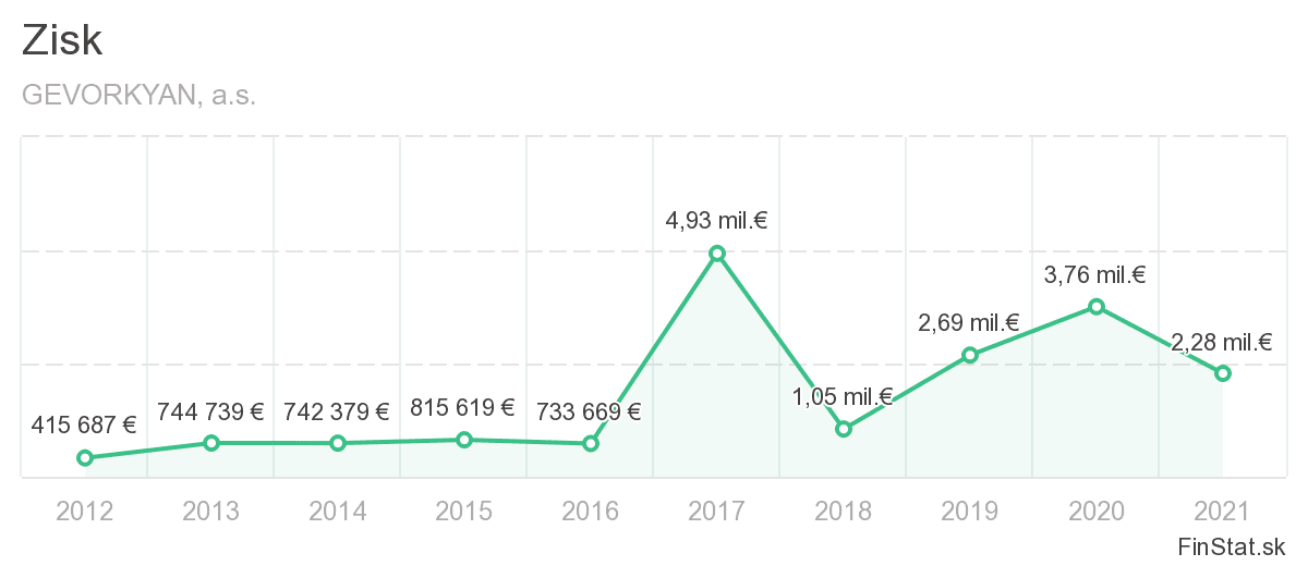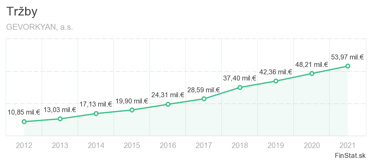 Od roku 2010 spoločnosť Gevorkyan navýšila svoje tržby z hodnoty 4,7 miliónov eur na 54 miliónov eur v roku 2021. Finančný plán spoločnosti počíta s rastom tržieb k úrovni 115 miliónov eur v roku 2026, čo by predstavovalo približne ich 16 % priemerný ročný rast (CAGR) medzi rokmi 2021 až 2026.
