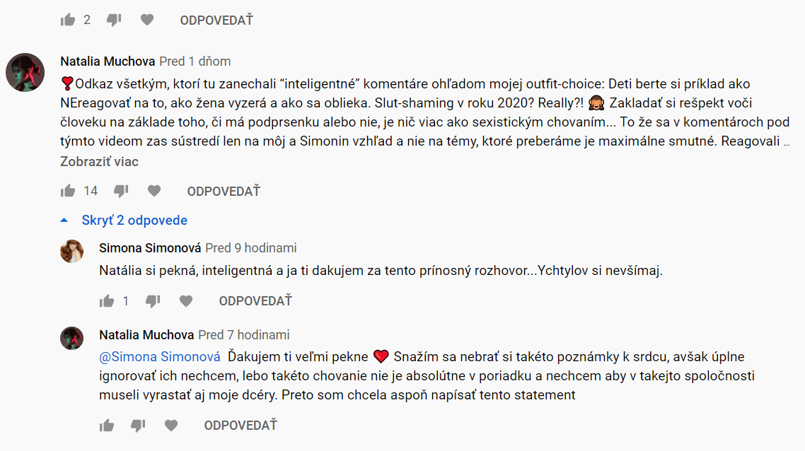 Náš nedávny rozhovor, ktorý bol uverejnený na YouTube-ovom kanáli so slovenskou modelkou Natáliou Muchovou si vyslúžil viacero nemiestnych komentárov, ktoré nenechali modelku chladnú.