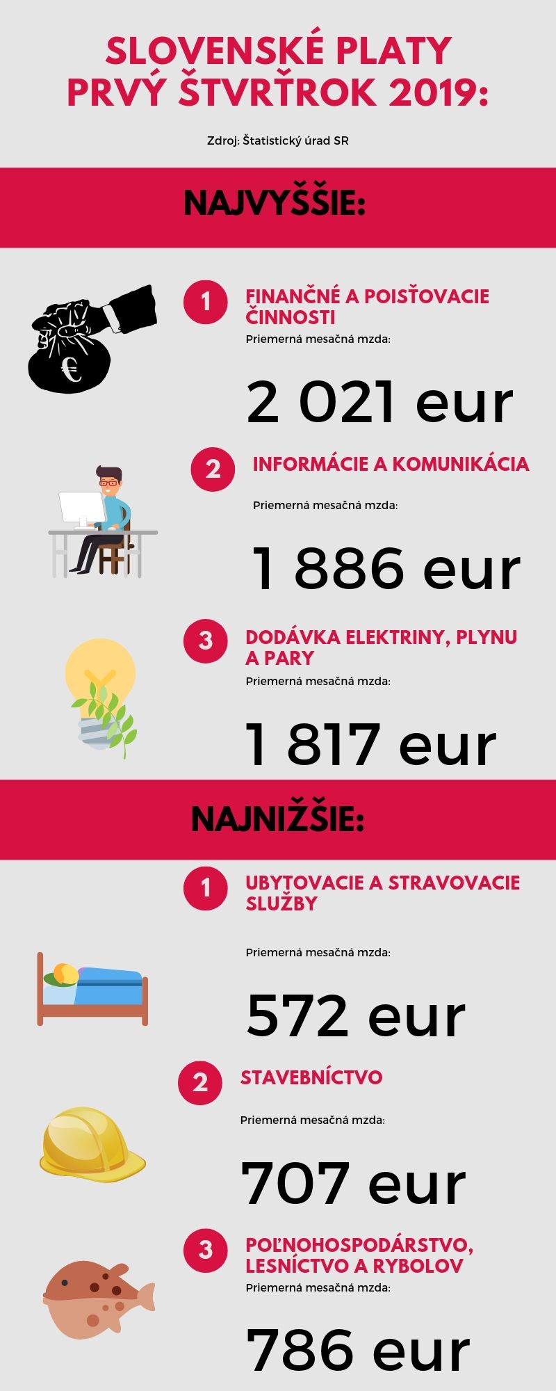 Podľa údajov Profesia.sk si v roku 2018 v priemere pýtali absolventi na pracovných pohovoroch plat vo výške 1 060 eur, čo je oproti predošlému obdobiu nárast o 65 eur a prvýkrát tak bola prekročená hranica 1 000 eur. Rovnako tak túto hranicu prekročila aj priemerná mesačná mzda na Slovensku. V prvom štvrťroku 2019 to bolo 1 023 eur.