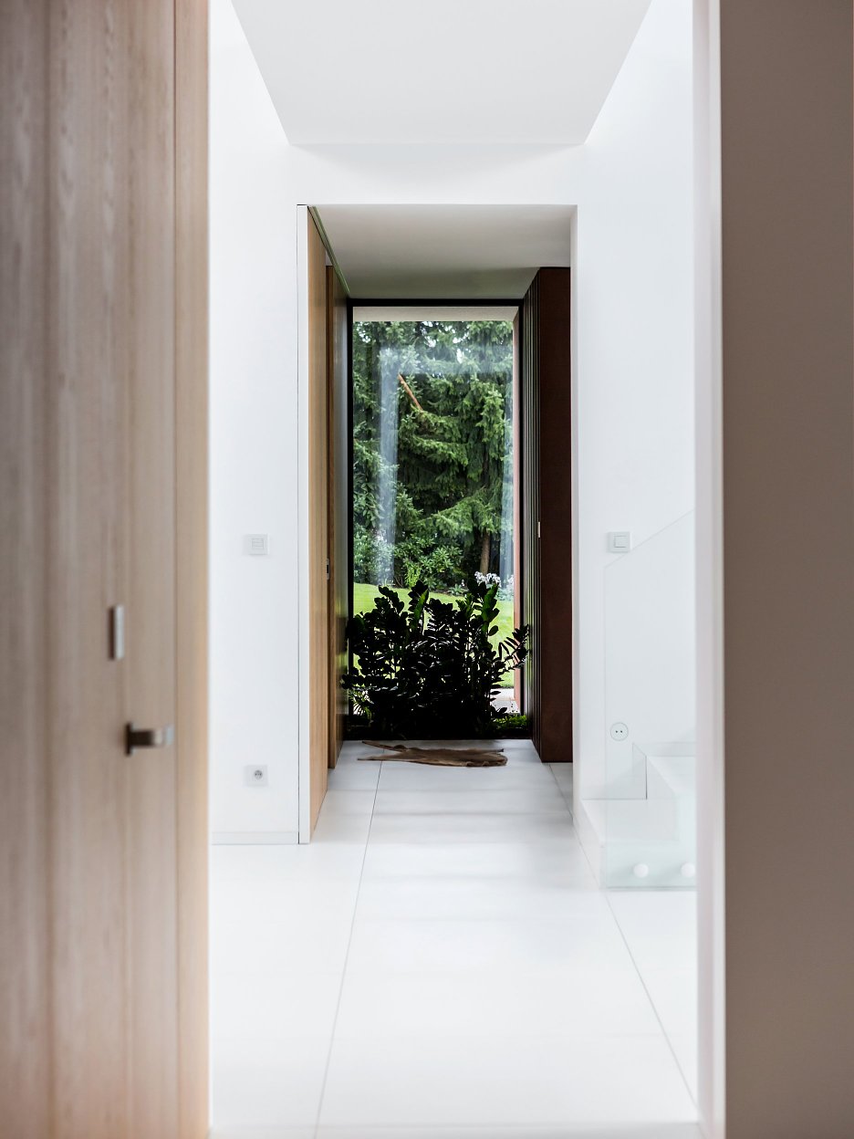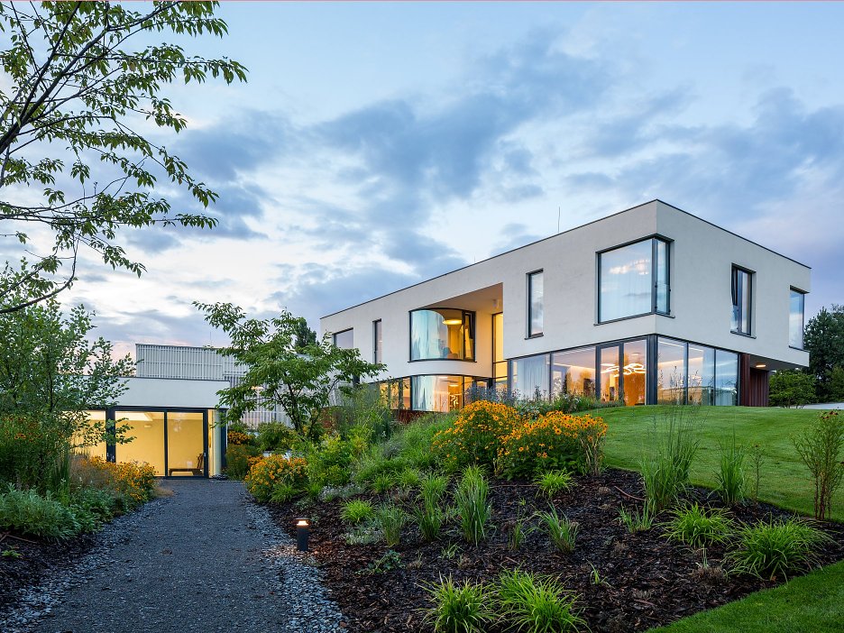Okolie rodinného domu je sadovnícky upravené (projekt záhrady: Ing.Michal Marcinov) Priestor exteriéru plynulo nadväzuje na dispozíciu rodinného domu a prepája ho samostatným programom záhradných priestorov. Utilitárne a s minimálnymi zmenami prepája vstupy rodinného domu so vstupmi na pozemok. Navrhnutá vegetácia rešpektuje lokálny a typický ráz okolitej krajiny. Kompozícia zachováva najvýznamnejšie výhľady do okolia.