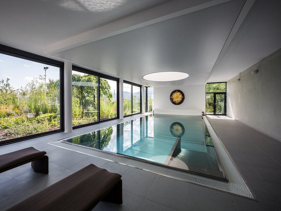 Prestavba vychádza z priestorových daností pôvodného objektu a polohy bazéna. Jeho prednosťou bolo osadenie na pozemku, výhľady na krajinu a prevádzka exteriéru.