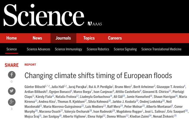 Nová štúdia, ktorej výsledky publikoval prestížny časopis Science, ukazuje, že doba výskytu najväčšej povodne v roku sa v mnohých oblastiach Európy posúva. Na výskume sa podieľali aj profesorka Silvia Kohnová a profesor Ján Szolgay z Katedry vodného hospodárstva Stavebnej fakulty STU v Bratislave.