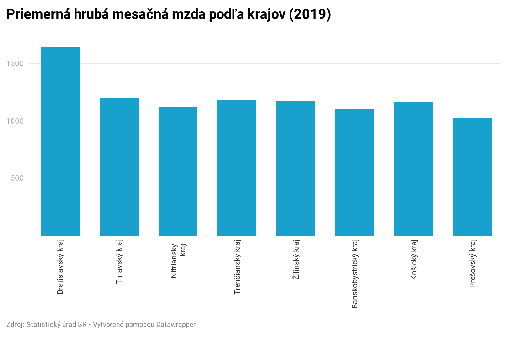 Na základe údajov získaných zo Štatistického úradu Slovenskej republiky je zrejmé, že kvôli výhodnej lokalizácií Bratislavského kraja (1 641 eur) tu majú ľudia väčšiu mzdu ako v iných krajoch. Základným faktorom je aj to, že sa v kraji nachádzajú aj podniky, organizácie, inštitúcie, ktoré sú ekonomicky výhodné a preto aj prispievajú k výške mzdy. To znamená viac pracovných ponúk, viac výhodných miest.