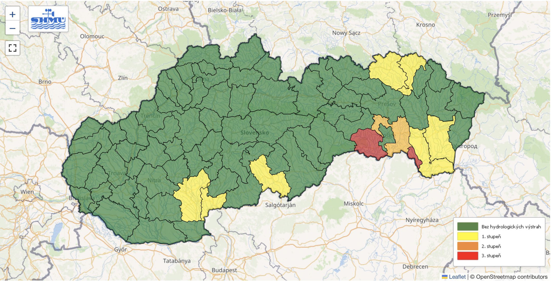 Slovenský hydrometeorologický ústav vydal pre niektoré okresy hydrologické výstrahy. Informuje o tom na svojom webe.