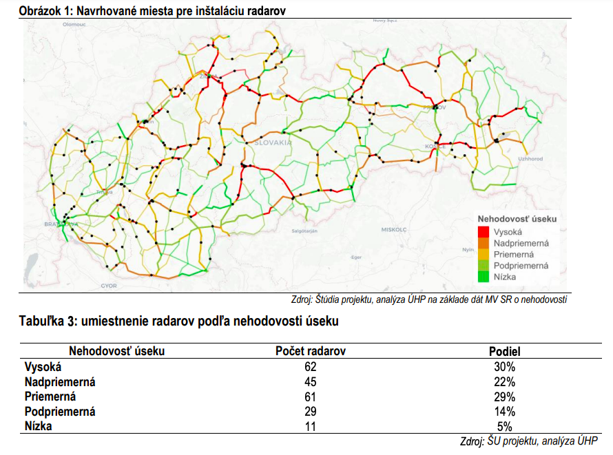 „Štúdia realisticky predpokladá, že nasadením stacionárnych radarov klesne počet nehôd o 10 – 25 %. Z doplňujúcich štatistík v štúdii vyplýva, že celkový počet nehôd na daných úsekoch z ktorých sa pokles počíta (1500 ročne) je pravdepodobne nadhodnotený a podľa hrubého odhadu ÚHP (útvar hodnoty za peniaze, pozn. red.) je reálny počet 750 ročne,“ vyplýva z hodnotenia ministerstva financií.