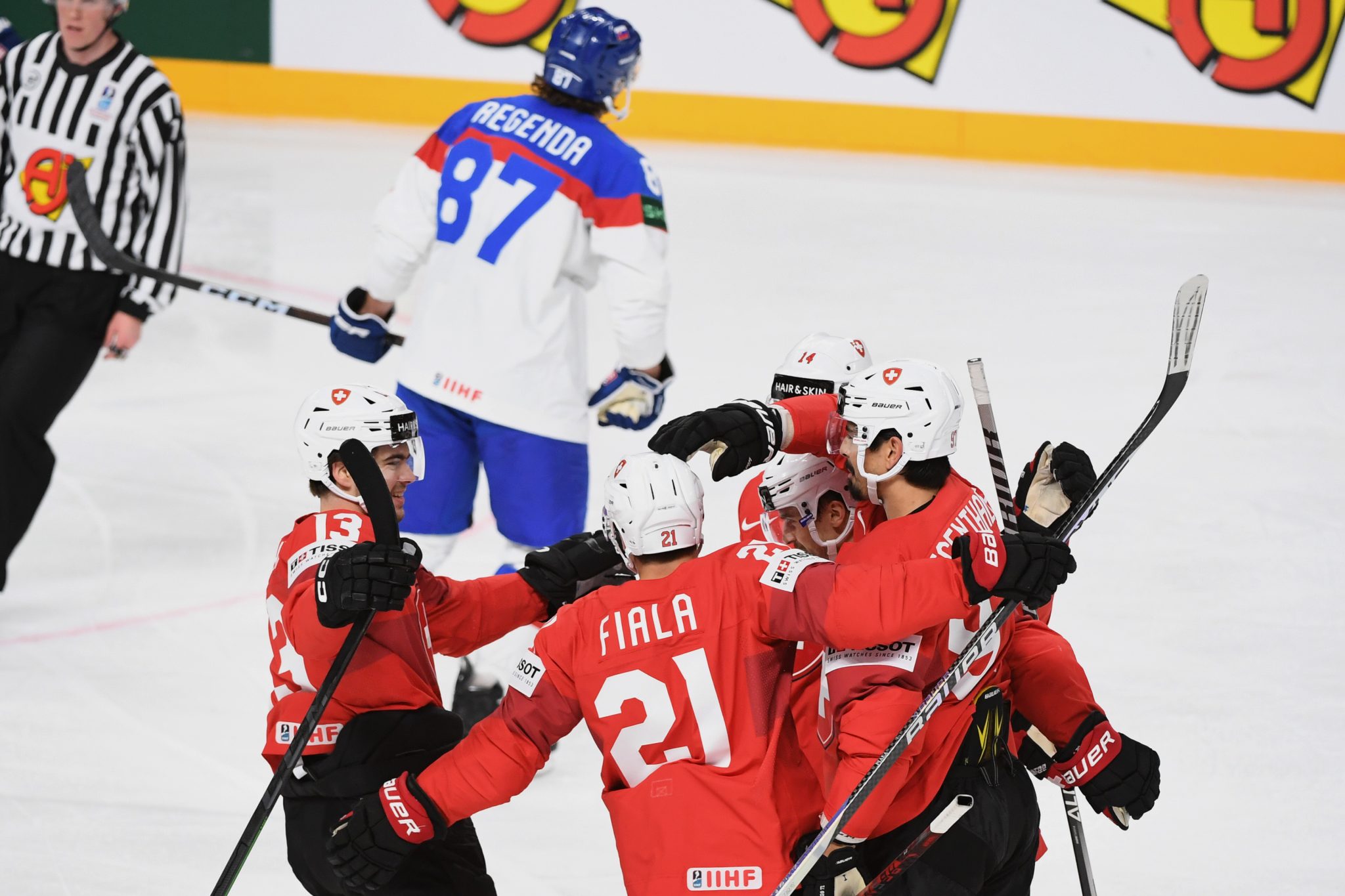 Slovensko skóruje! Andrej Kudrna znižuje stav zápasu! Švajčiari vyhrávali o dva góly len približne 20 sekúnd a Slovensko sa stáva prvým tímom, ktorý skóroval proti Švajčiarsku na tohtoročnom šampionáte.