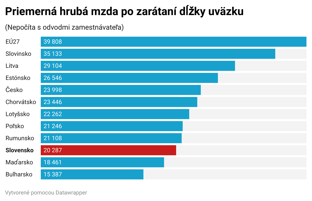 Ďalšia možnosť je zohľadniť aj zamestnancov na skrátený úväzok. Táto štatistika prerátava všetky mzdy na ekvivalent jedného riadneho úväzku. V aktuálnych údajoch za rok 2024 skončilo Slovensko v rámci východnej EÚ11 tretie od konca – pred nami sa umiestnili aj krajiny ako Rumunsko.