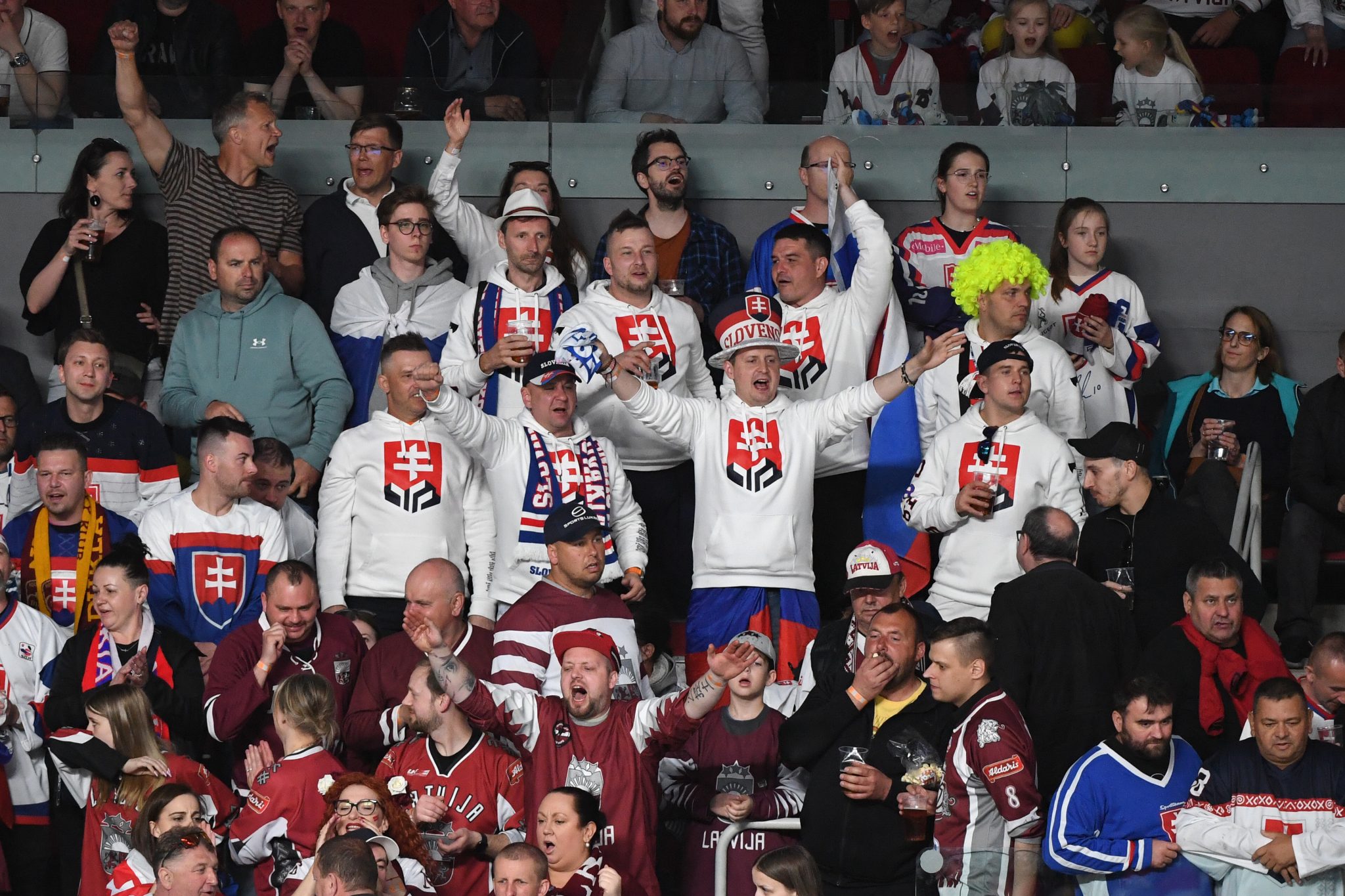 Arena Riga je zaplnená a poriadne buráca. Domáci fanúšikovia sú nadšení, volajú po víťazstve. Ozývajú sa však aj pokriky slovenských priaznivcov, ktorí sú po druhej tretine určite menej spokojní.