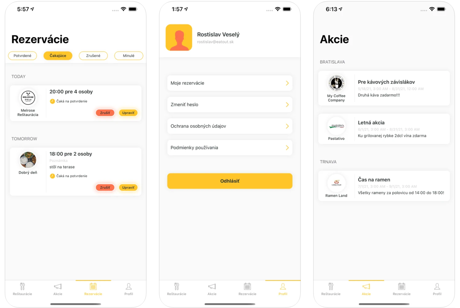 - Appka Eat Out združuje reštaurácie a okrem ich rezervačného systému ponúka aj akcie, zľavy či pohľad na celé menu v prevádzke